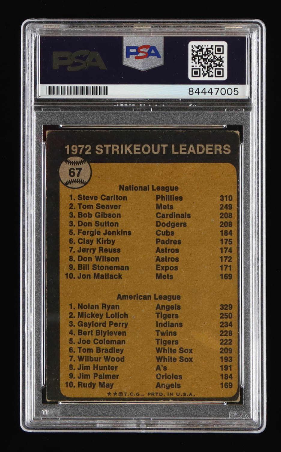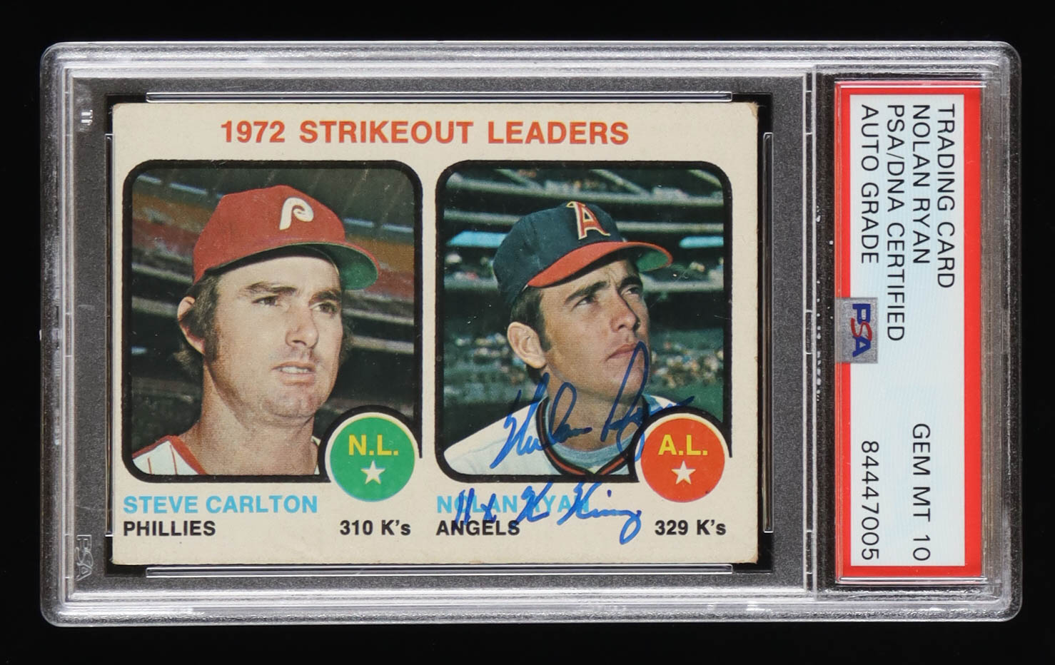 Nolan Ryan Signed 1974 Topps #207 Strikeout Leaders Nolan Ryan / Tom Seaver Inscribed "11x K King" (PSA)