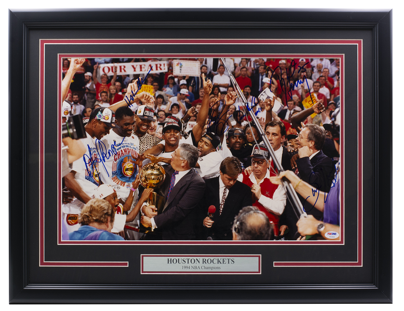 1993-94 Rockets Custom Framed Photo Display Signed by (4) with Otis Thorpe, Sam Cassell, Robert Horry & Hakeem Olajuwon (PSA)