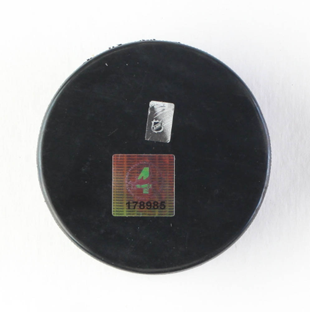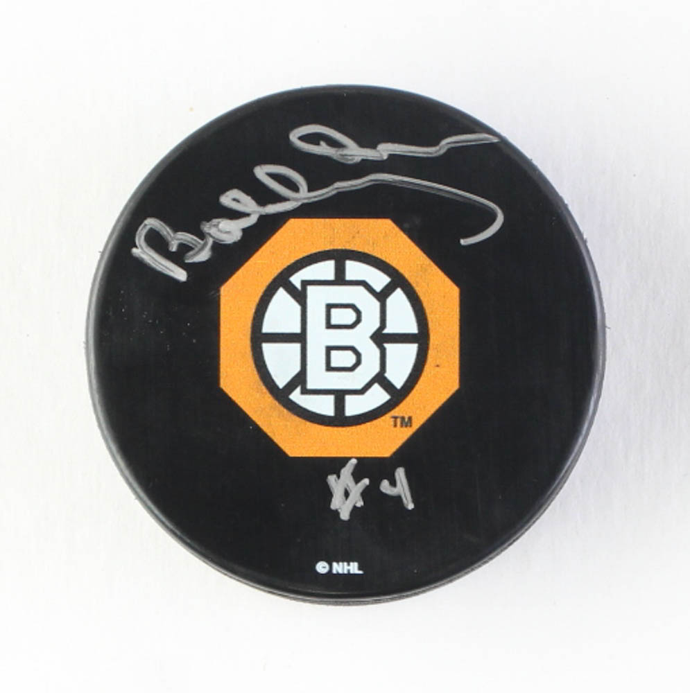 Boston Bruins official NHL logo hockey puck is hand-signed by Bobby Orr (HOF).