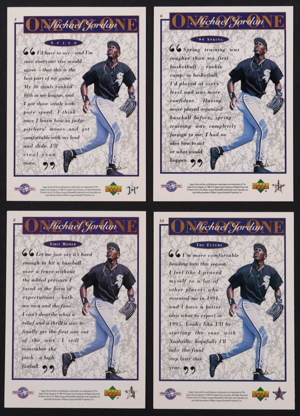 1995 Upper Deck Minors Michael Jordan One On One Baseball Complete Set of (10) Cards with Michael Jordan #1, Michael Jordan #2, Michael Jordan #3, Michael Jordan #4