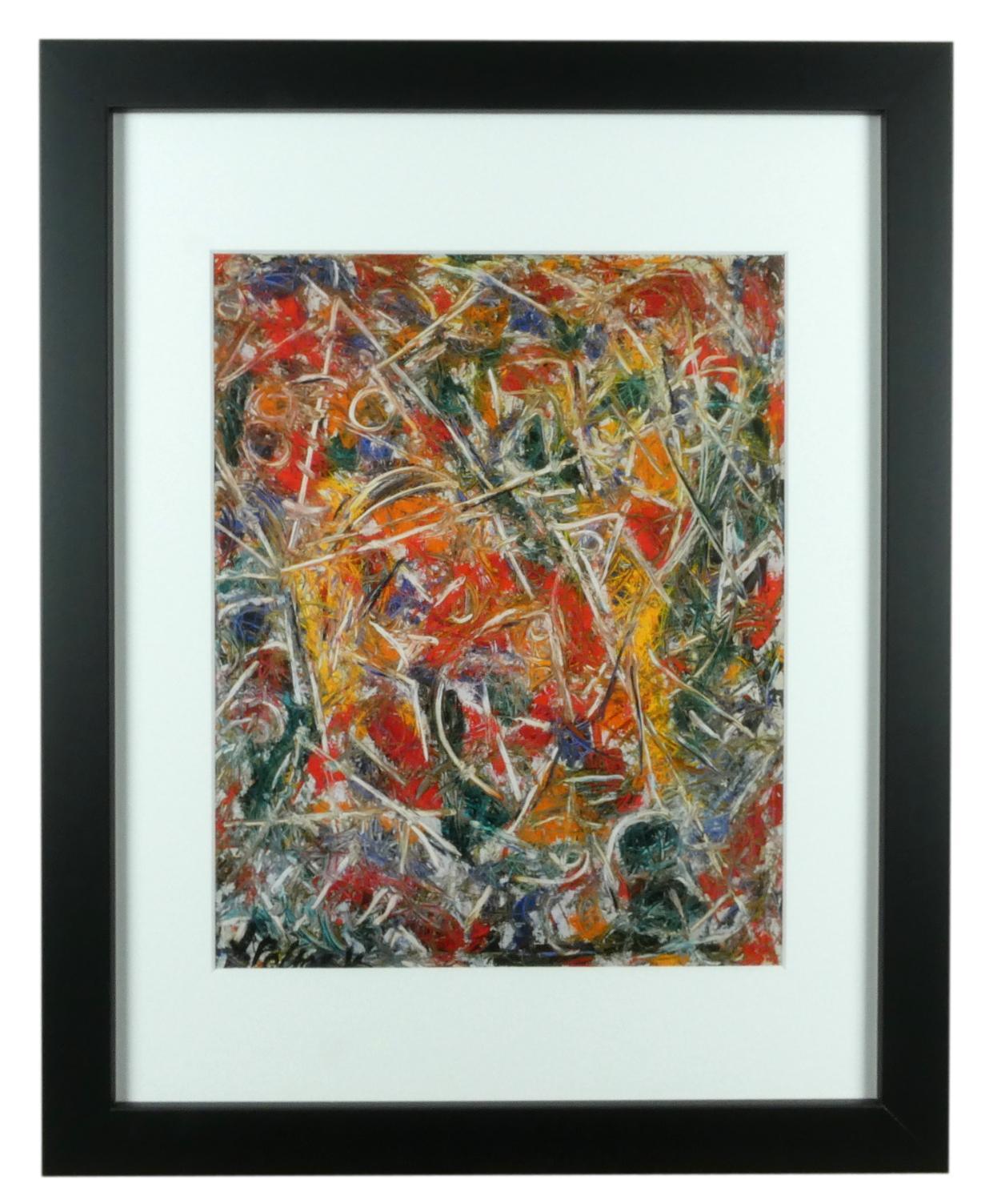 Custom frame measures 16" x 20" in size and features a Jackson Pollock "Croaking Movement" matted photo.