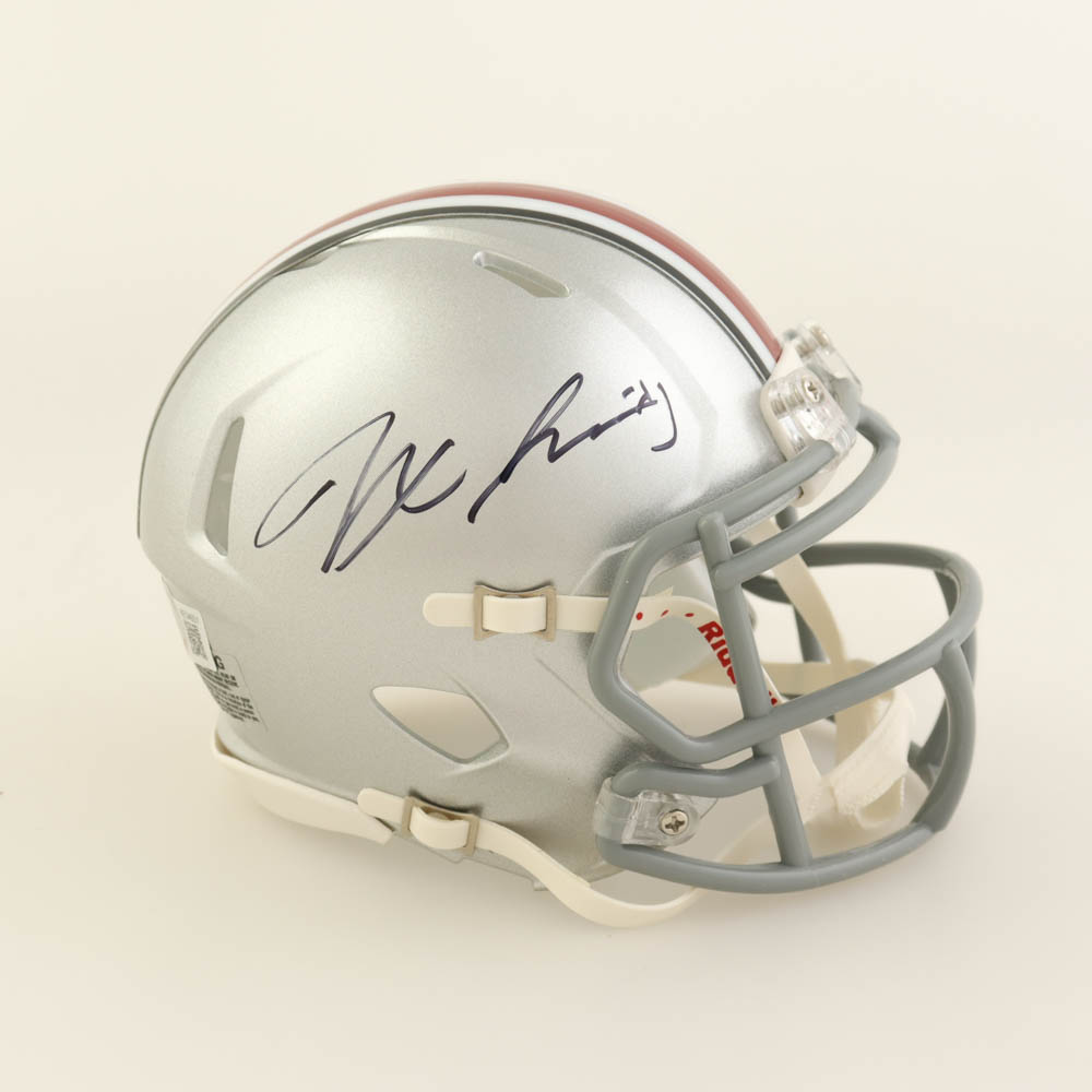 Riddell Ohio State Buckeyes Speed Mini Helmet. Hand-signed by Jaxon Smith-Njigba.