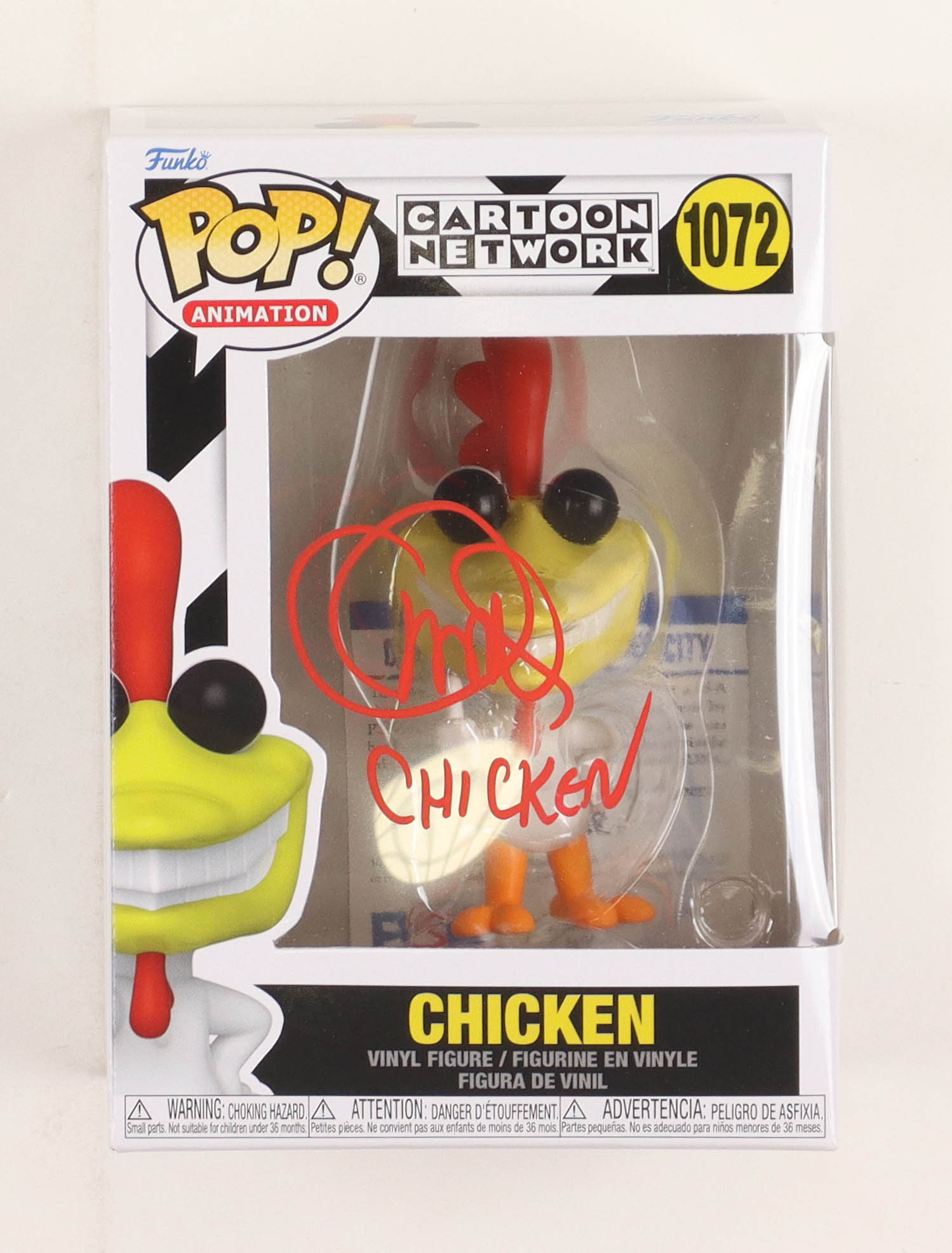 Charlie Adler Signed Pop! Animation "Cow And Chicken" #1072 Chicken Funko Pop! Vinyl Figure Inscribed "Chicken" (PSA)