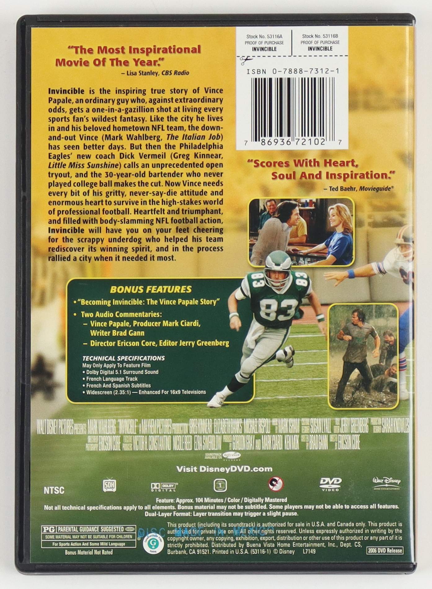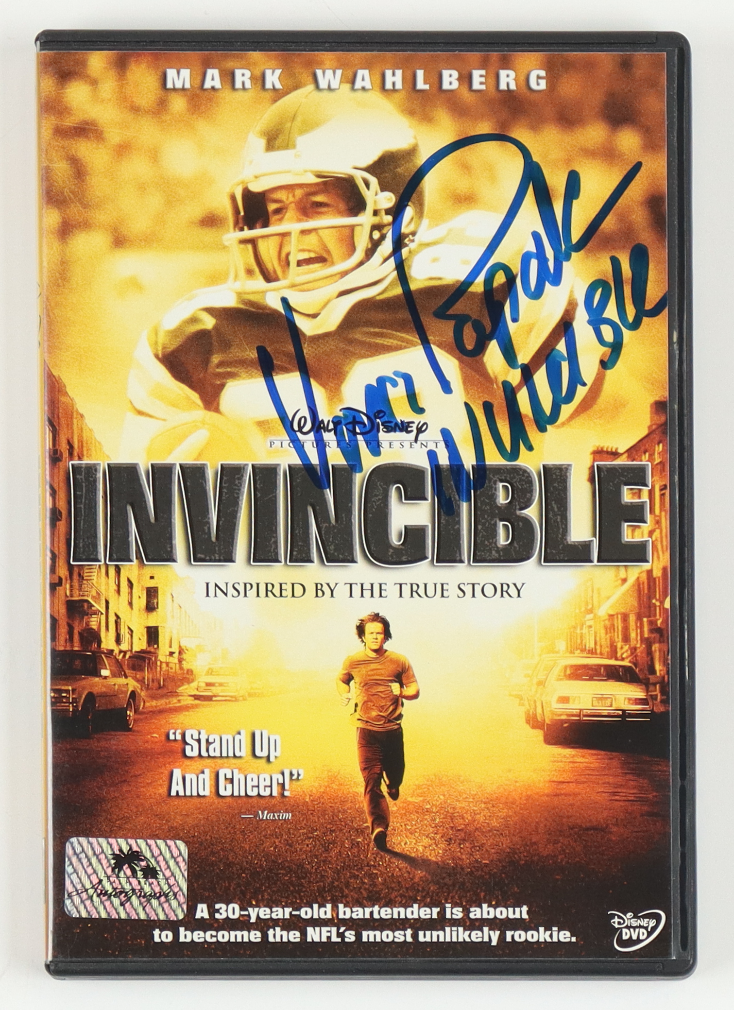 "Invincible" DVD case has been hand-signed and inscribed by Vince Papale. Please note that the disc is included with the listing.