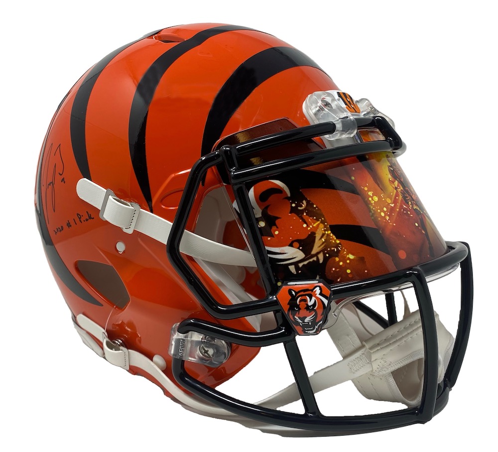 Joe Burrow Signed Bengals Full-Size Authentic On-Field Speed Helmet Inscribed "2020 #1 Pick" with Custom Visor (Fanatics)