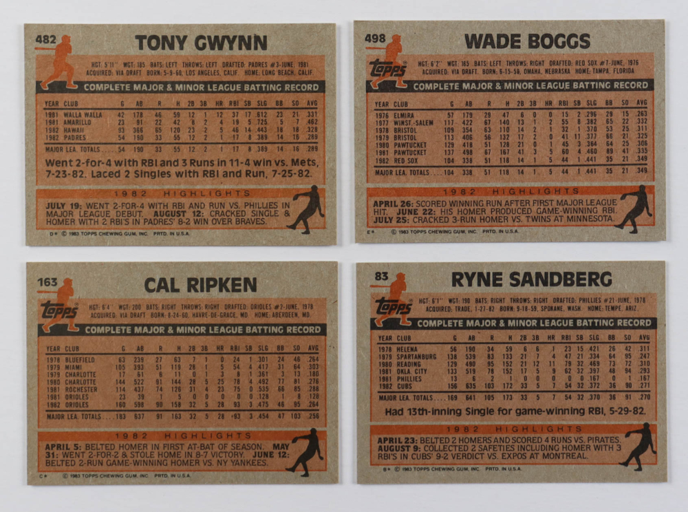 Complete Set of (792) 1983 Topps Baseball Cards with Tony Gwynn #482 RC, Ryne Sandberg #83 RC, Wade Boggs #498 RC, Cal Ripken Jr. #163