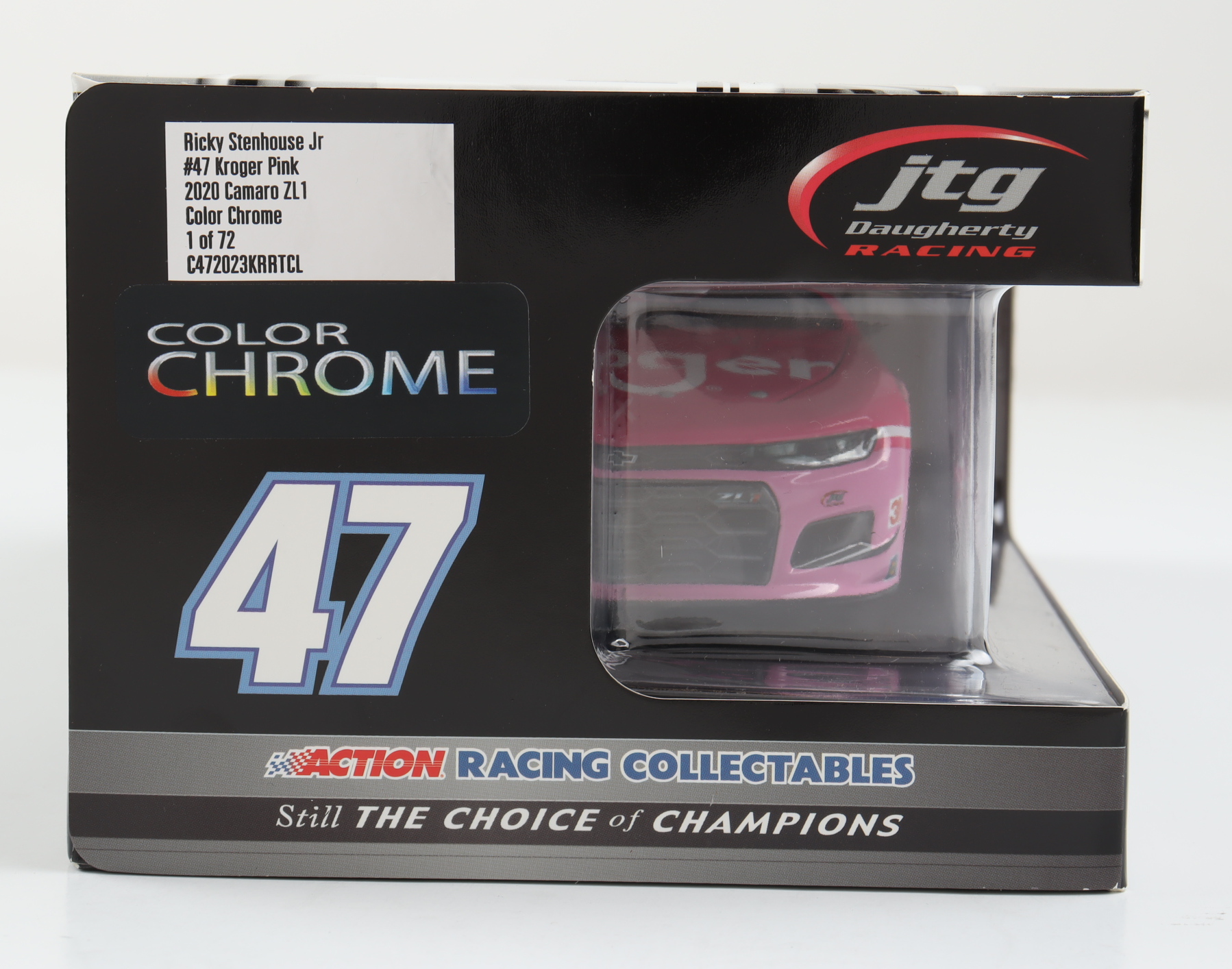 Action Collectables Ricky Stenhouse Jr. #47 Kroger Pink 2020 Camaro ZL1 1:24 die-cast car. The car is limited edition and is unsigned. The original packaging is included as shown.