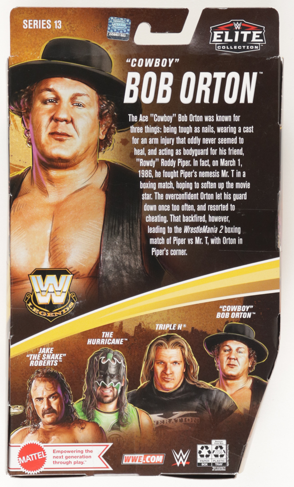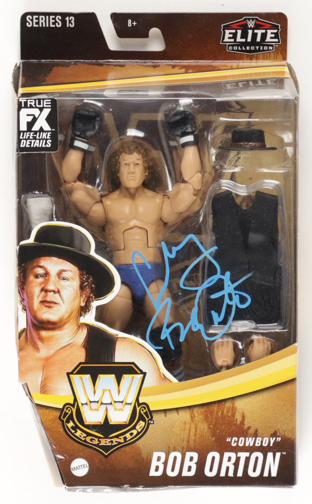 2021 Mattel WWE Elite Collection action figure has been hand-signed on the packaging by Bob Orton (HOF).