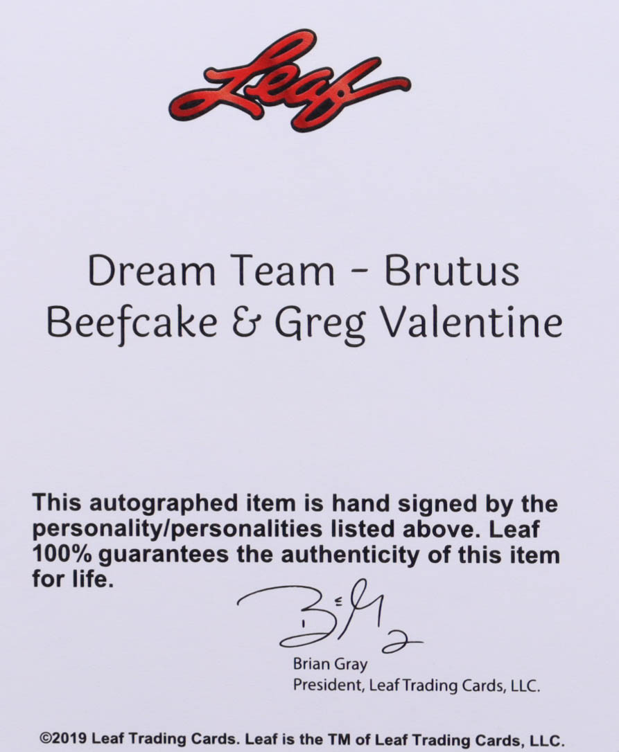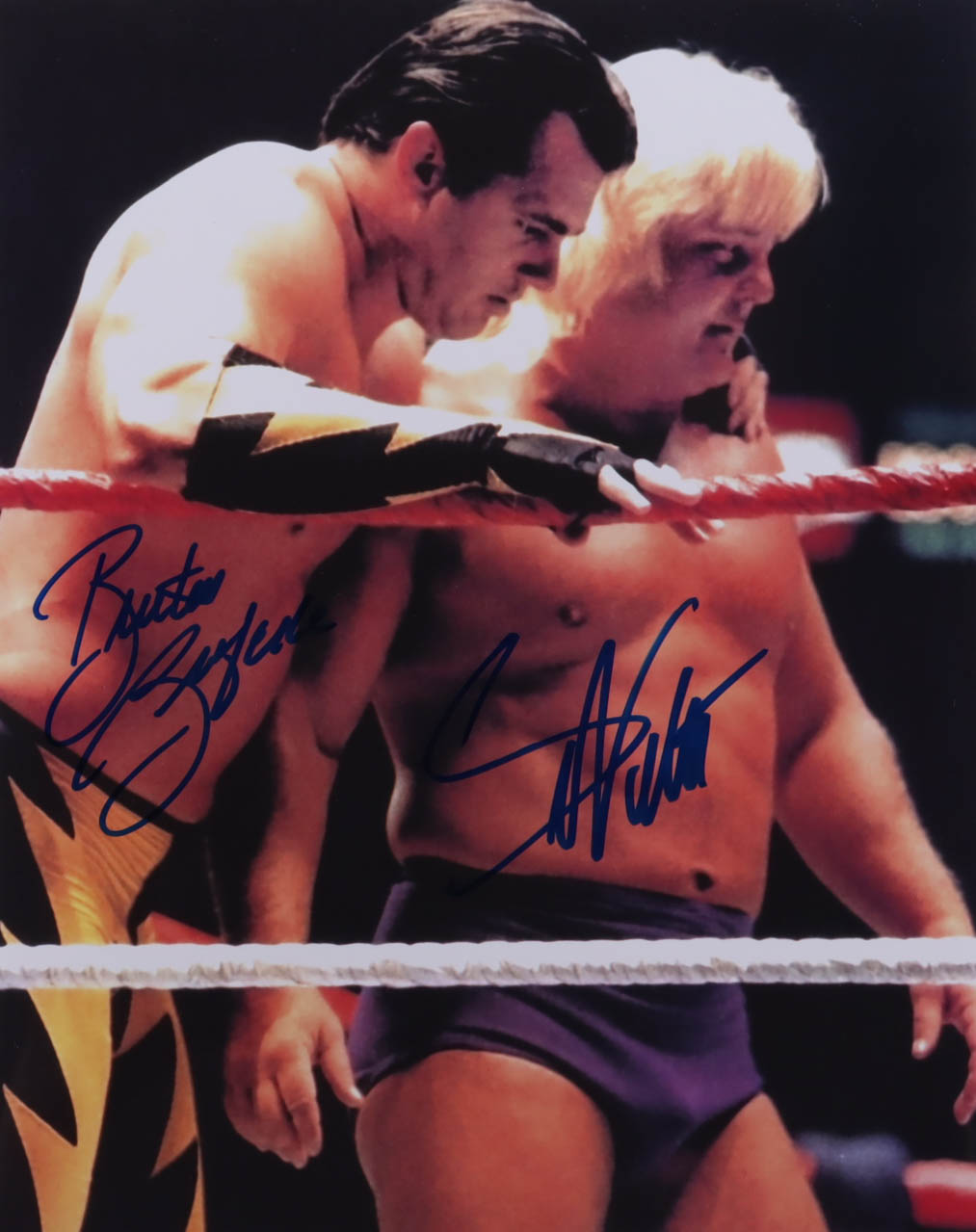 Photo measures 8" x 10" in size. Hand-signed by Brutus Beefcake (HOF) and Greg Valentine (HOF).