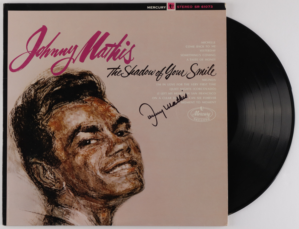 Johnny Mathis Signed "The Shadow of Your Smile" Vinyl Record Album (Beckett)
