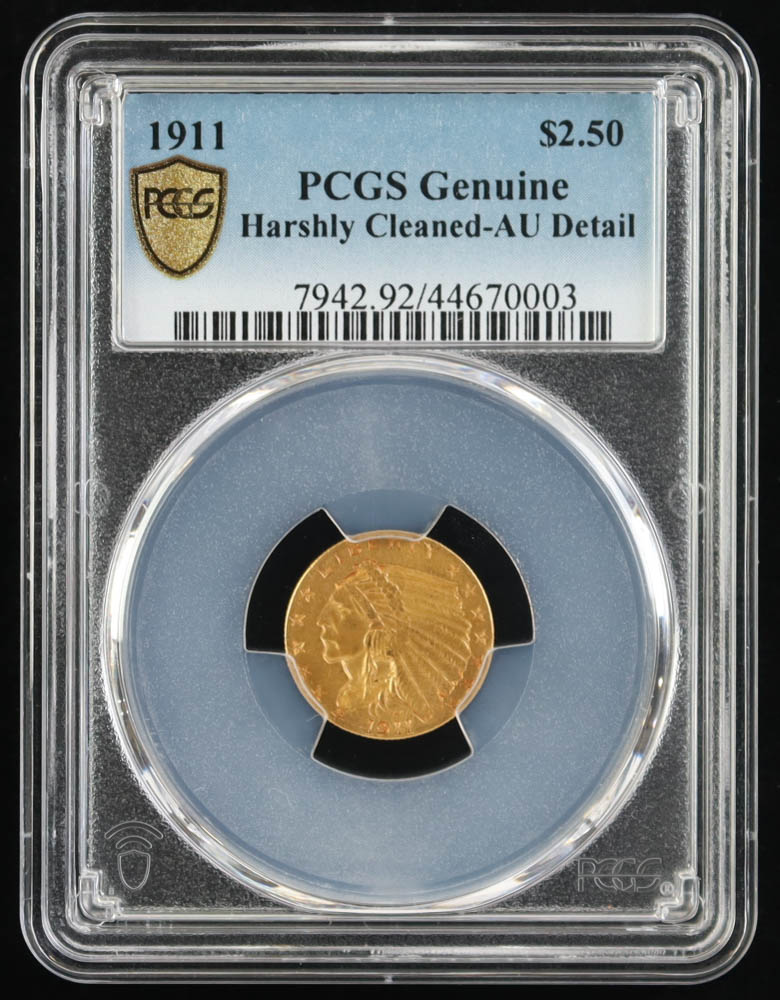 1911 Indian Head $2.5 Quarter Eagle Gold Coin (PCGS AU Detail)