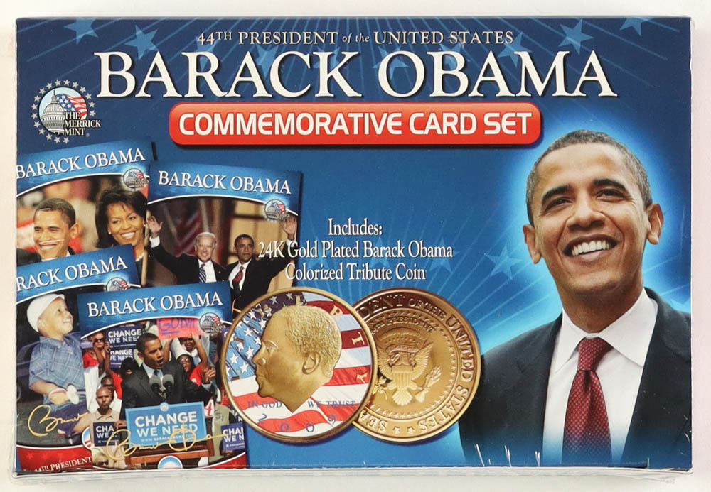 Merrick Mint Barack Obama Trading Card Set of (44) Cards With Commemorative 24K Gold Plated Coin