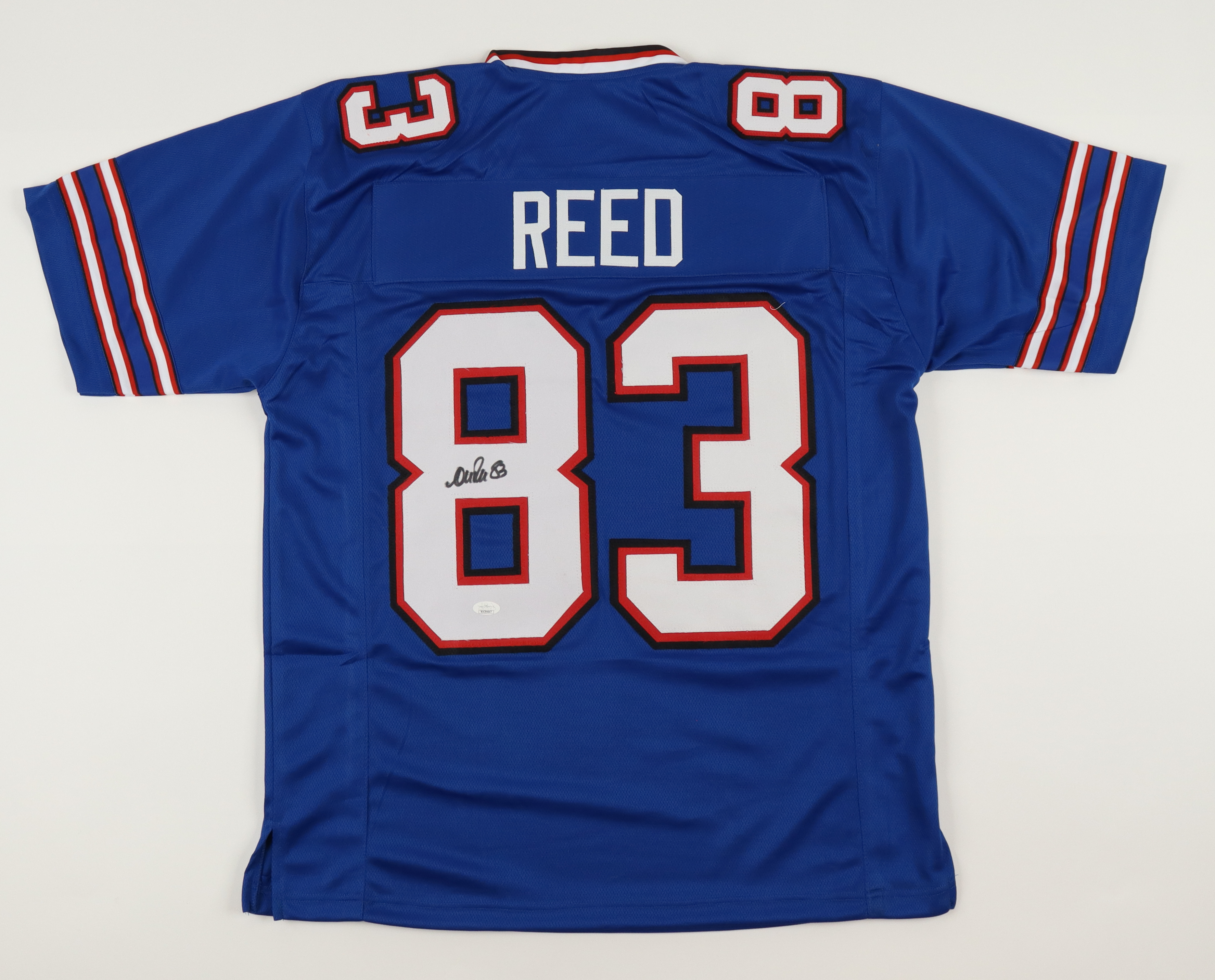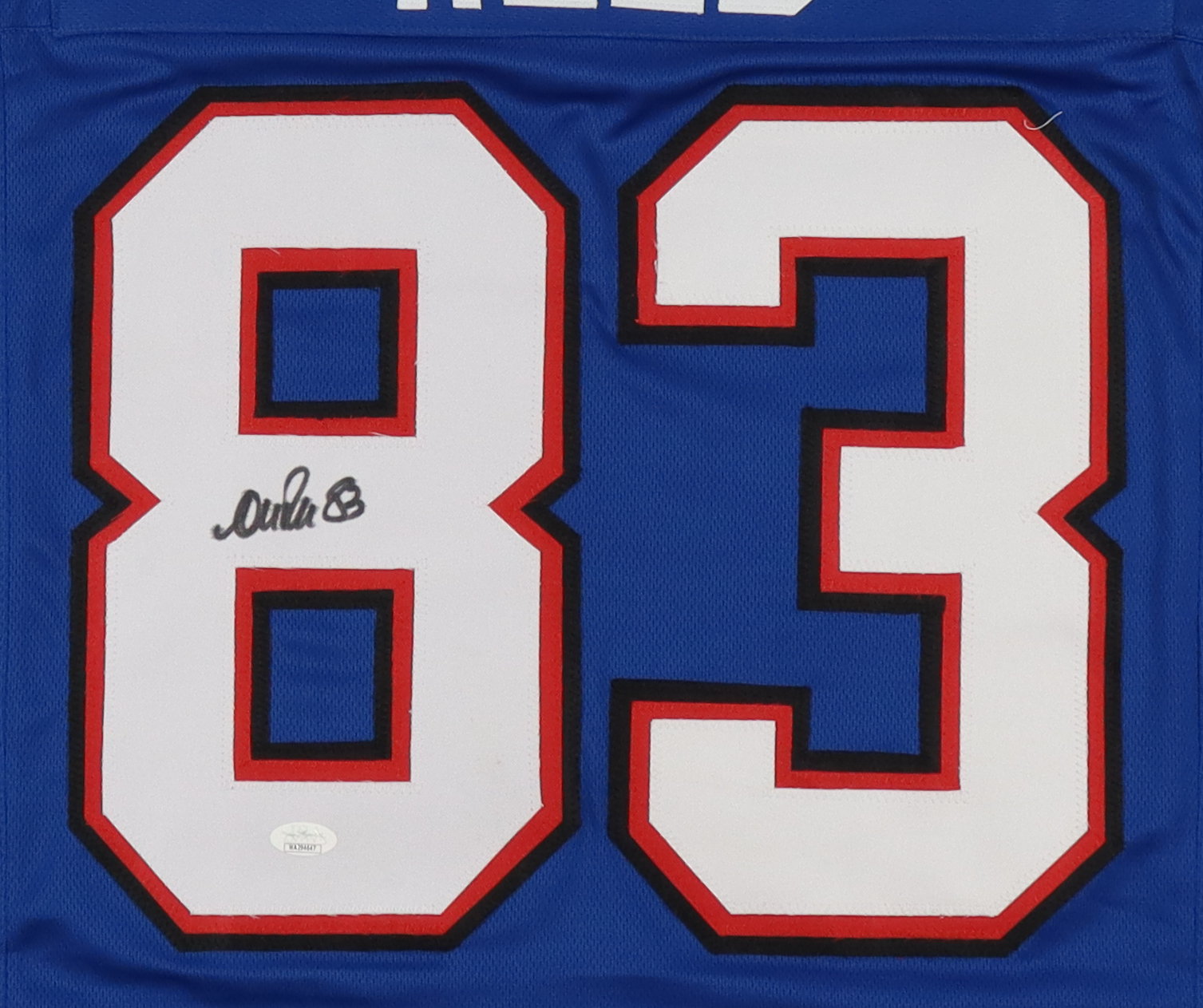 Custom jersey. Everything sewn on, size XL. Hand-signed by Andre Reed (HOF).