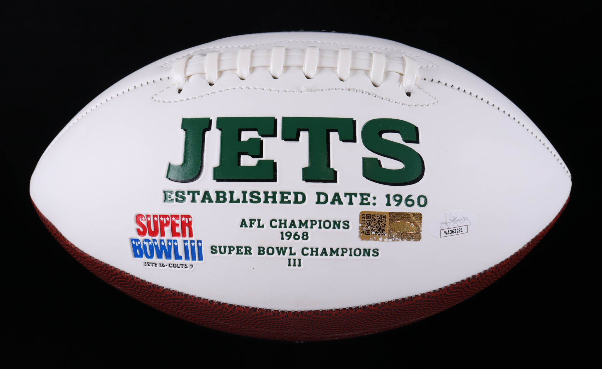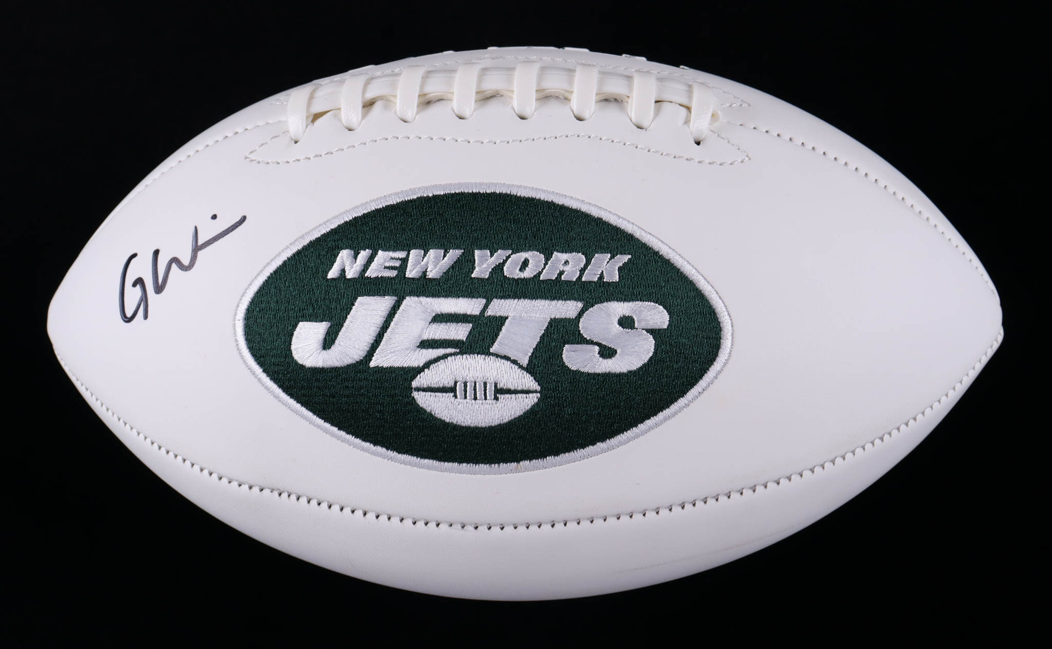 New York Jets logo NFL football has been hand-signed by Garrett Wilson.