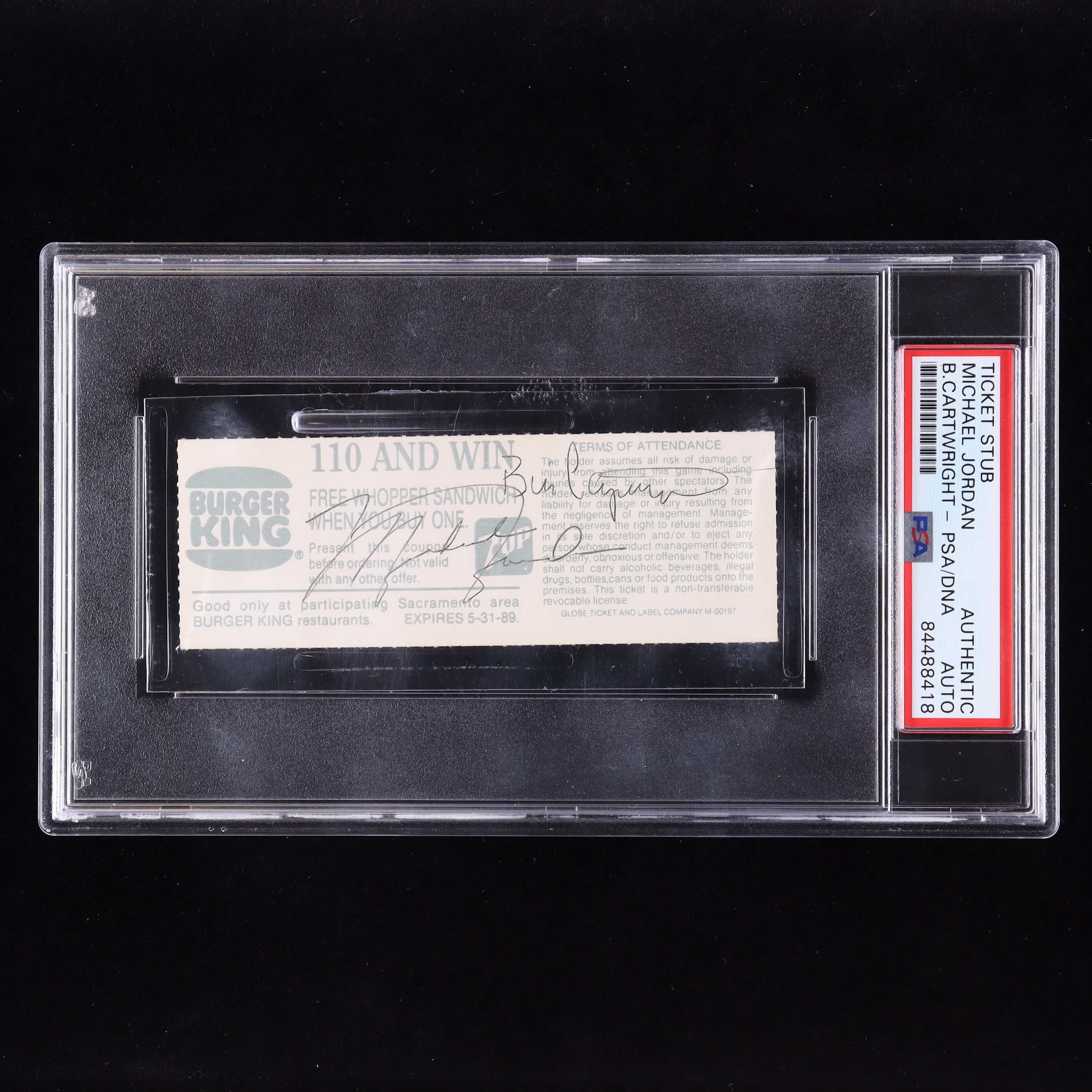 Michael Jordan & Bill Cartwright Signed 1988 Bulls Ticket Stub (PSA)