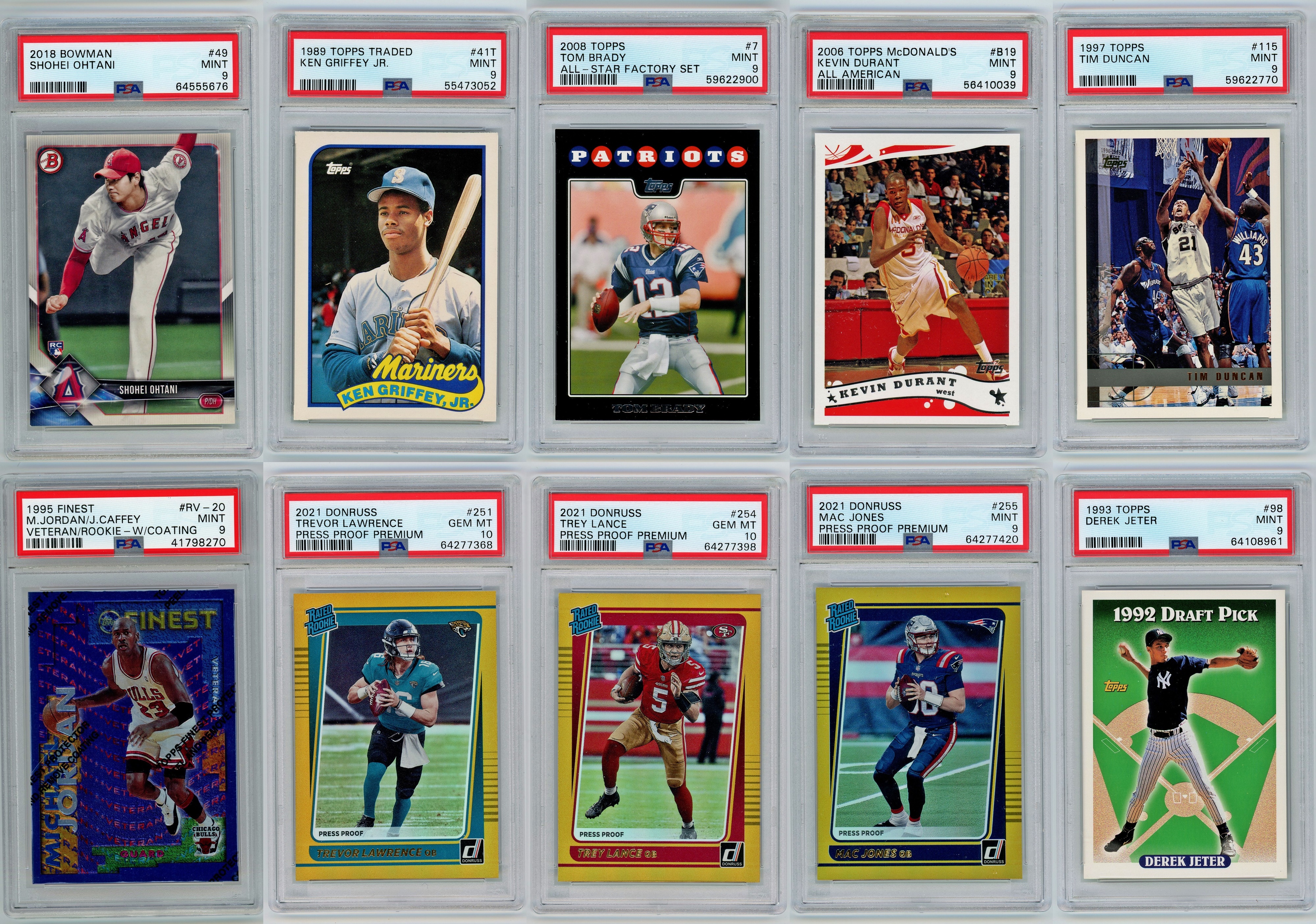 Patrick Mahomes, Tom Brady, Michael Jordan, Shohei Ohtani, Kevin Durant, LeBron James, Larry Bird, Dalvin Cook, Russell Wilson, Allen Iverson, John Stockton, Frank Thomas, Ceedee Lamb, Giannis Antentokounmpo, Ken Griffey Jr., Ben Roethlisberger, Lamelo Ball, Pete Alonso, Fernando Tatis Jr., Anthony Davis, Tim Duncan, Ray Allen, Bo Bichette, Adrian Peterson, Mike Trout, Jayson Tatum, DeAndre Hopkins, Mickey Mantle, Lionel Messi, Derek Jeter, Mac Jones, Trevor Lawrence, Trey Lance, Joe Montana, Jerry Rice, Bo Jackson, Peyton Manning, Albert Pujols, Drew Brees, and more!