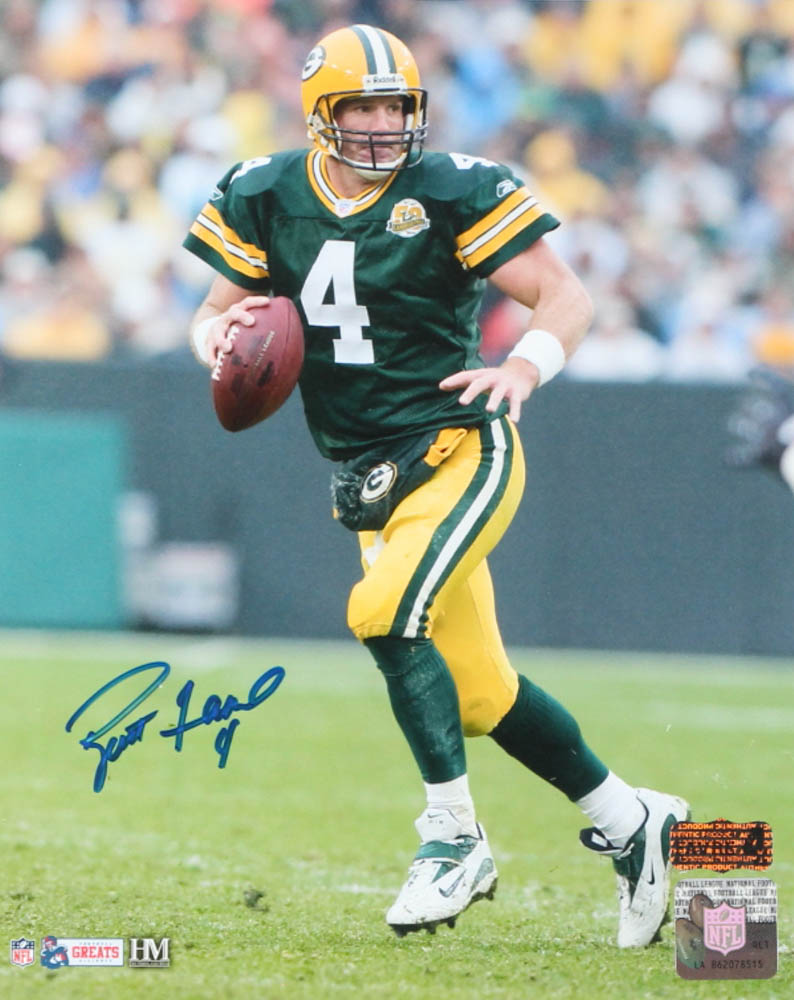 Photo measures 8" x 10" in size and has been hand-signed by Brett Favre (Green Bay Packers, HOF).