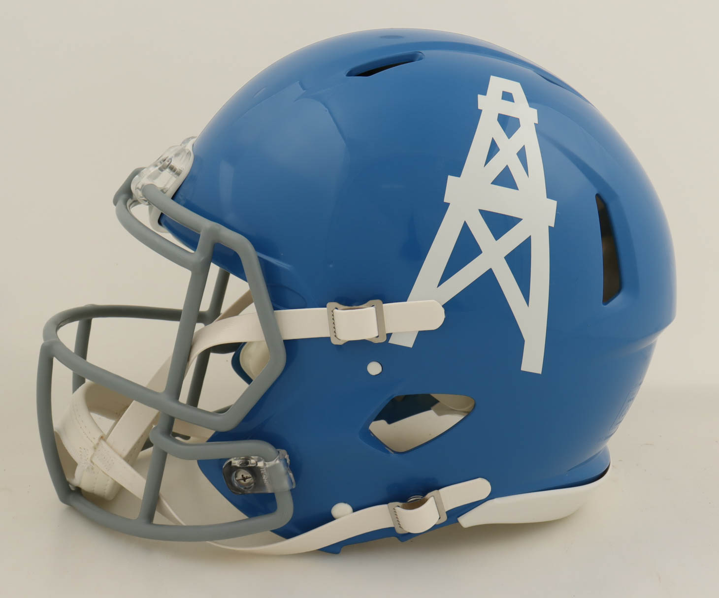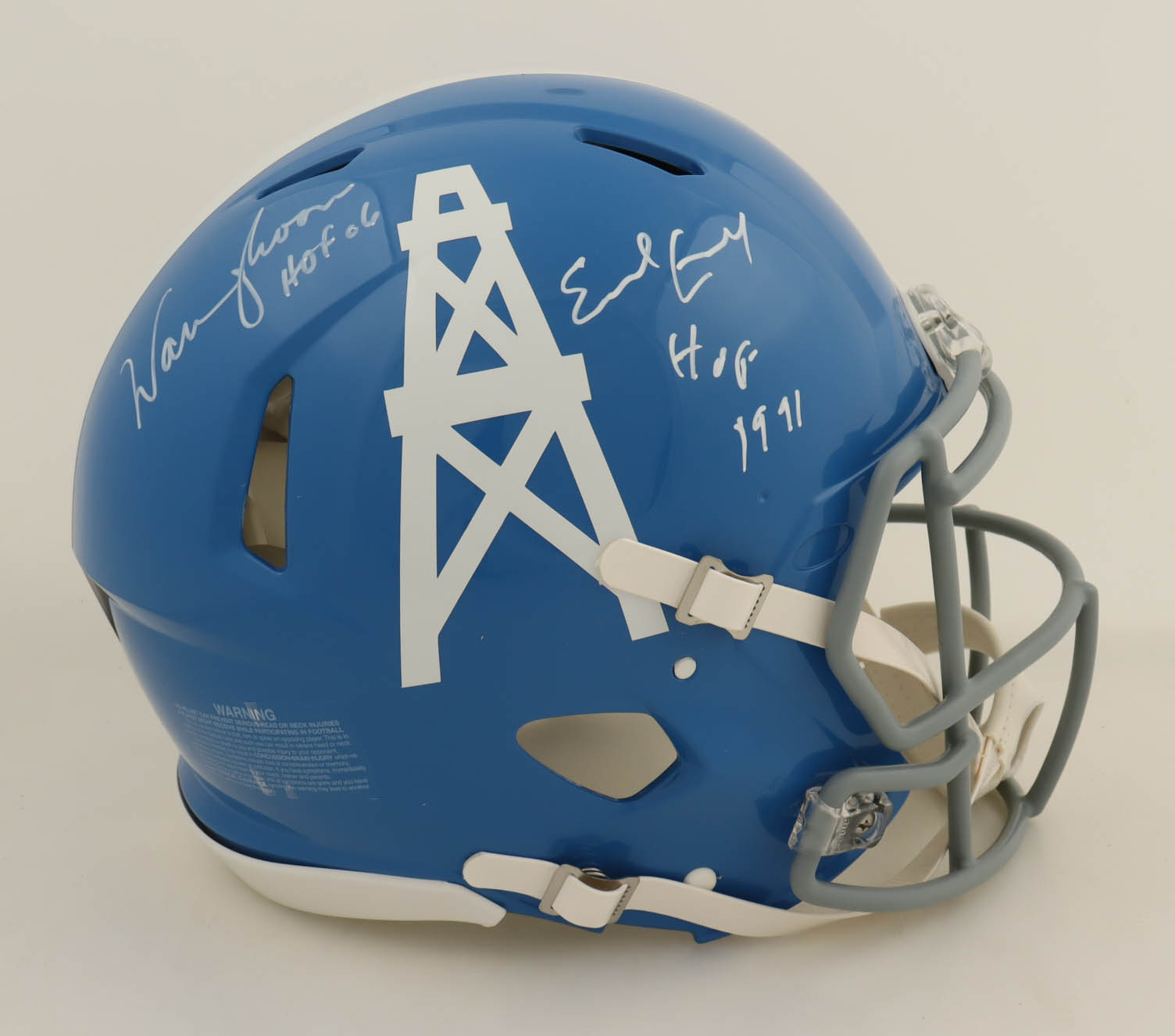 Riddell Houston Oilers full-size authentic on-field Speed helmet. Hand-signed and inscribed by Earl Campbell (HOF) and Warren Moon (HOF).