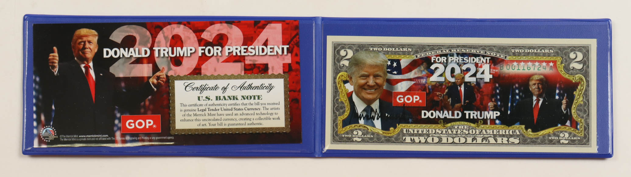 Donald Trump Genuine Legal Tender U.S. $2 Two Dollar Bill Commemorative Bank Note with Display Folder