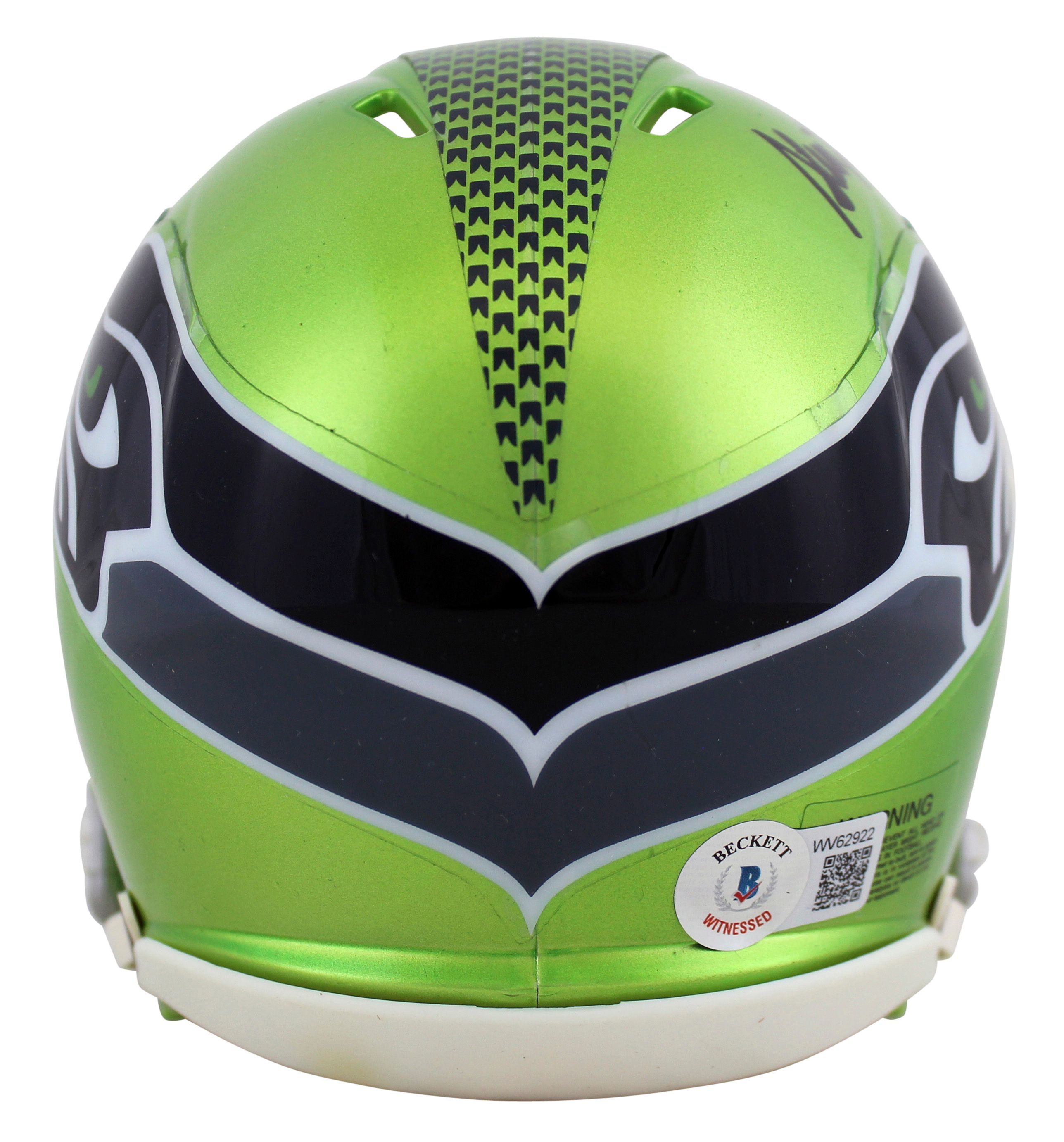 Riddell Seattle Seahawks Flash Alternate Speed mini helmet. Hand-signed and inscribed by Steve Largent (HOF).