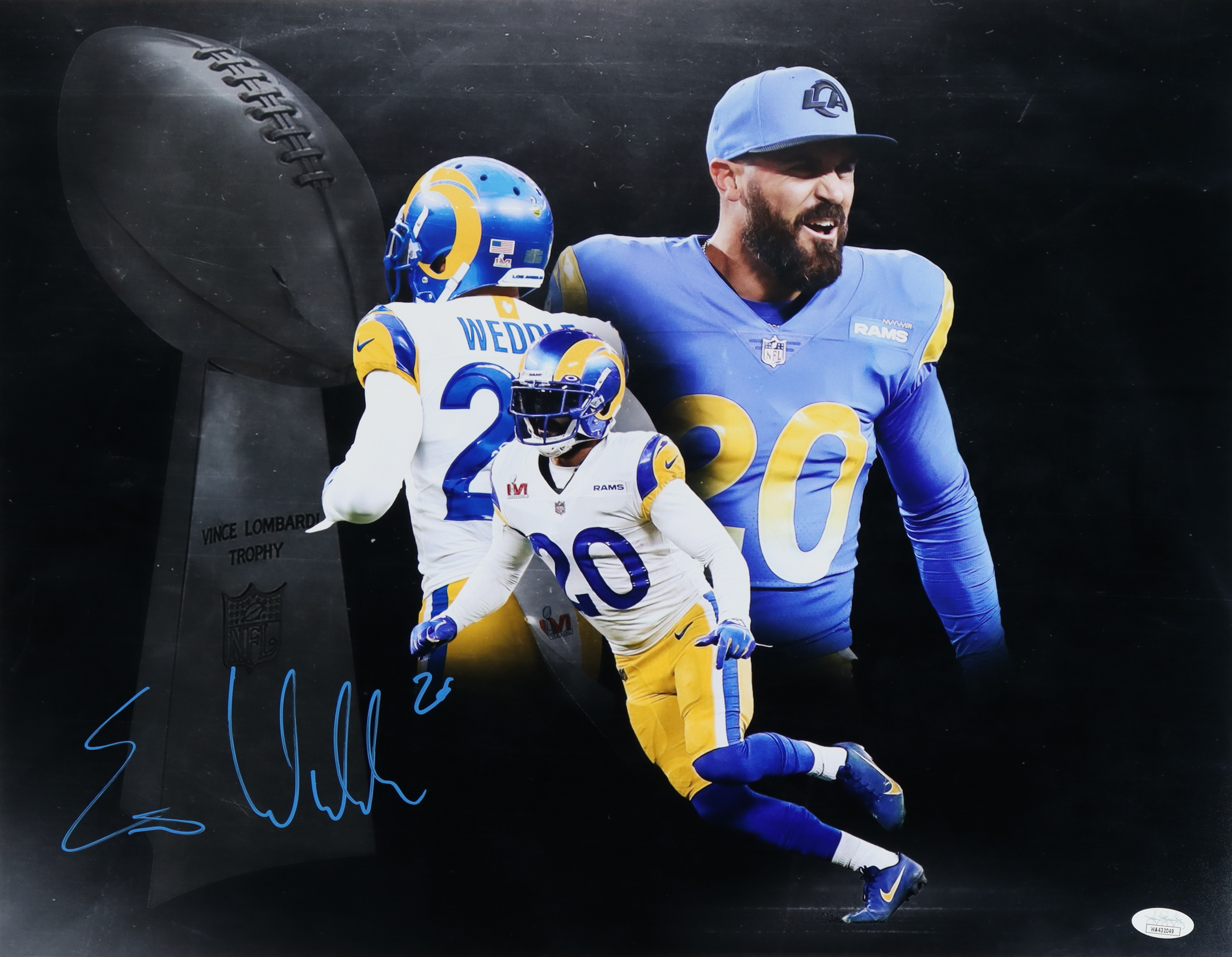 Photo measures 16" x 20" in size and has been hand-signed by Eric Weddle (Los Angeles Rams).