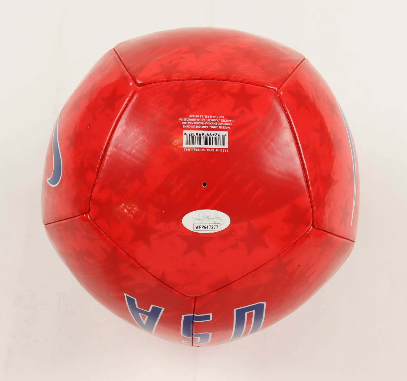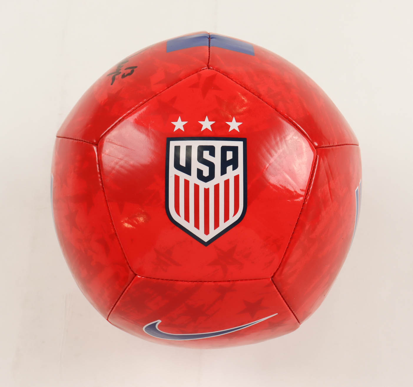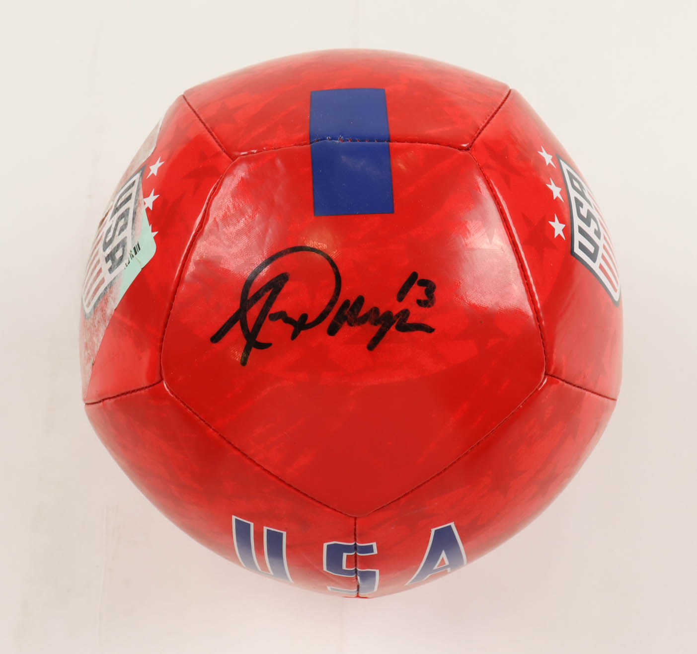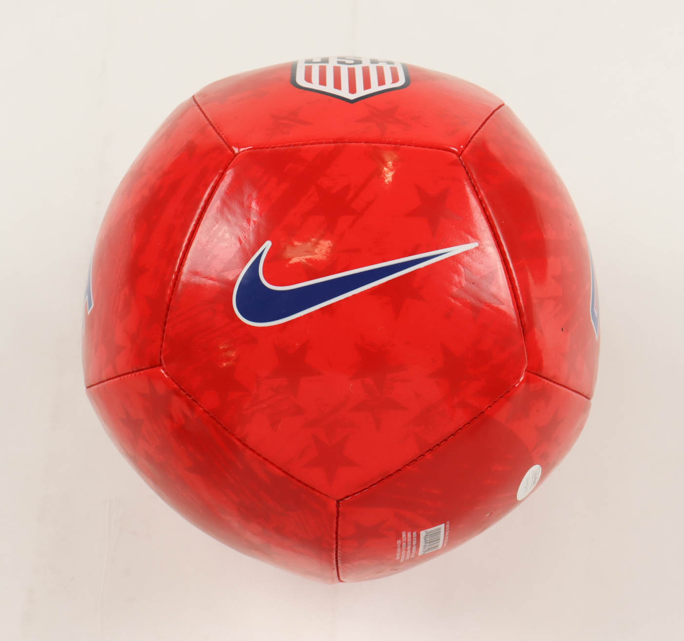 Nike Team USA Soccer Ball has been hand-signed by Alex Morgan. Please note, the ball has sticker residue on the panel to the left of the signature.