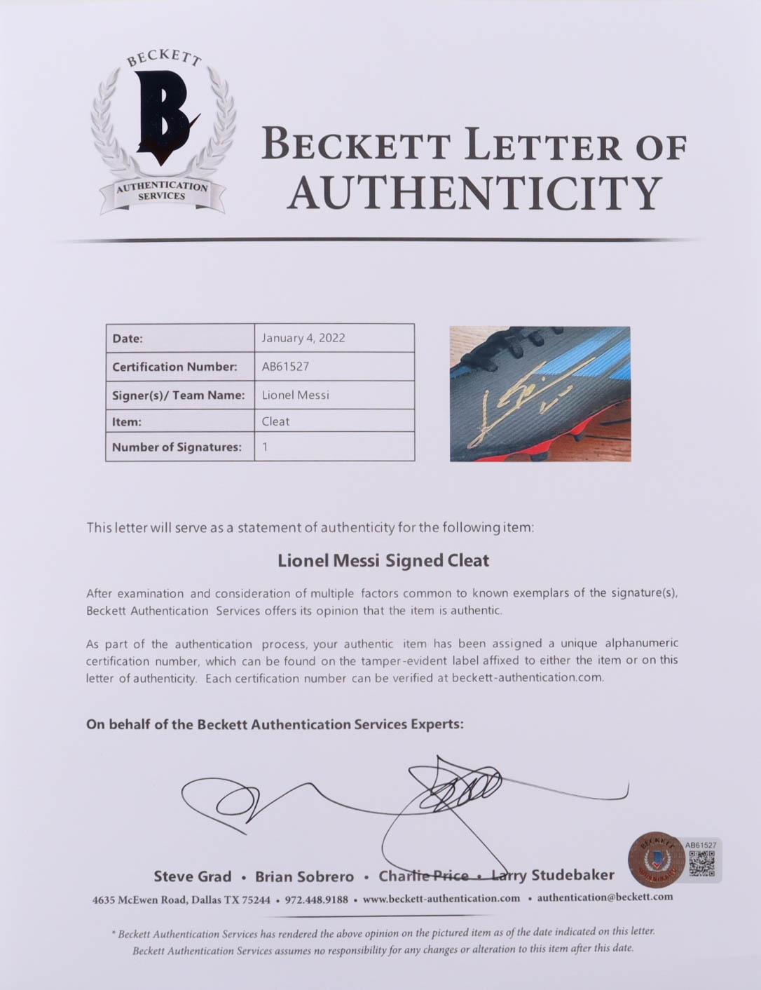 Lionel Messi Signed Adidas Soccer Cleat (Beckett)