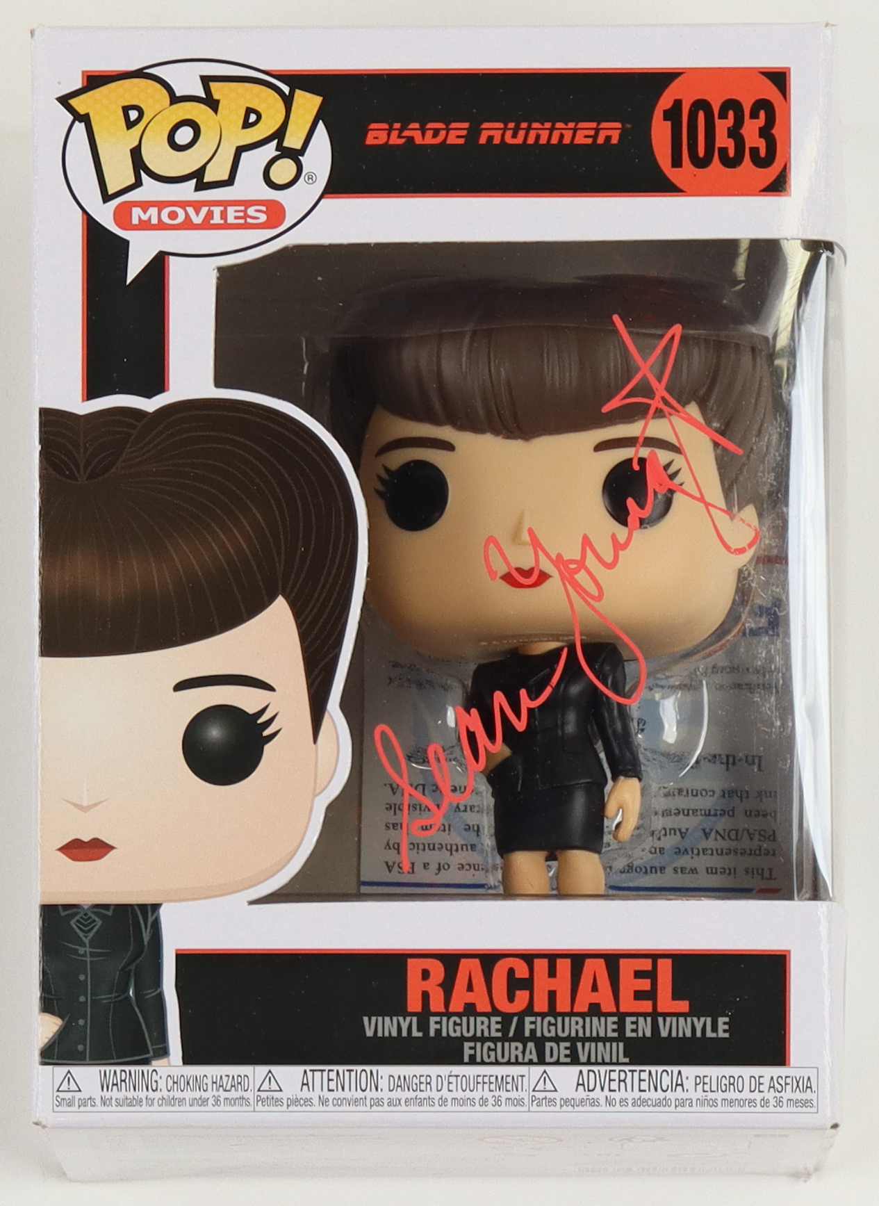 Funko Pop! figure measures approximately 4" tall. Hand-signed on the packaging by Sean Young (Rachael).