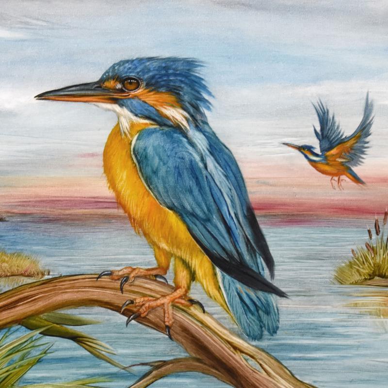Martin Katon Signed "Kingfisher" 20x20 Original Oil Painting on Canvas (PA)
