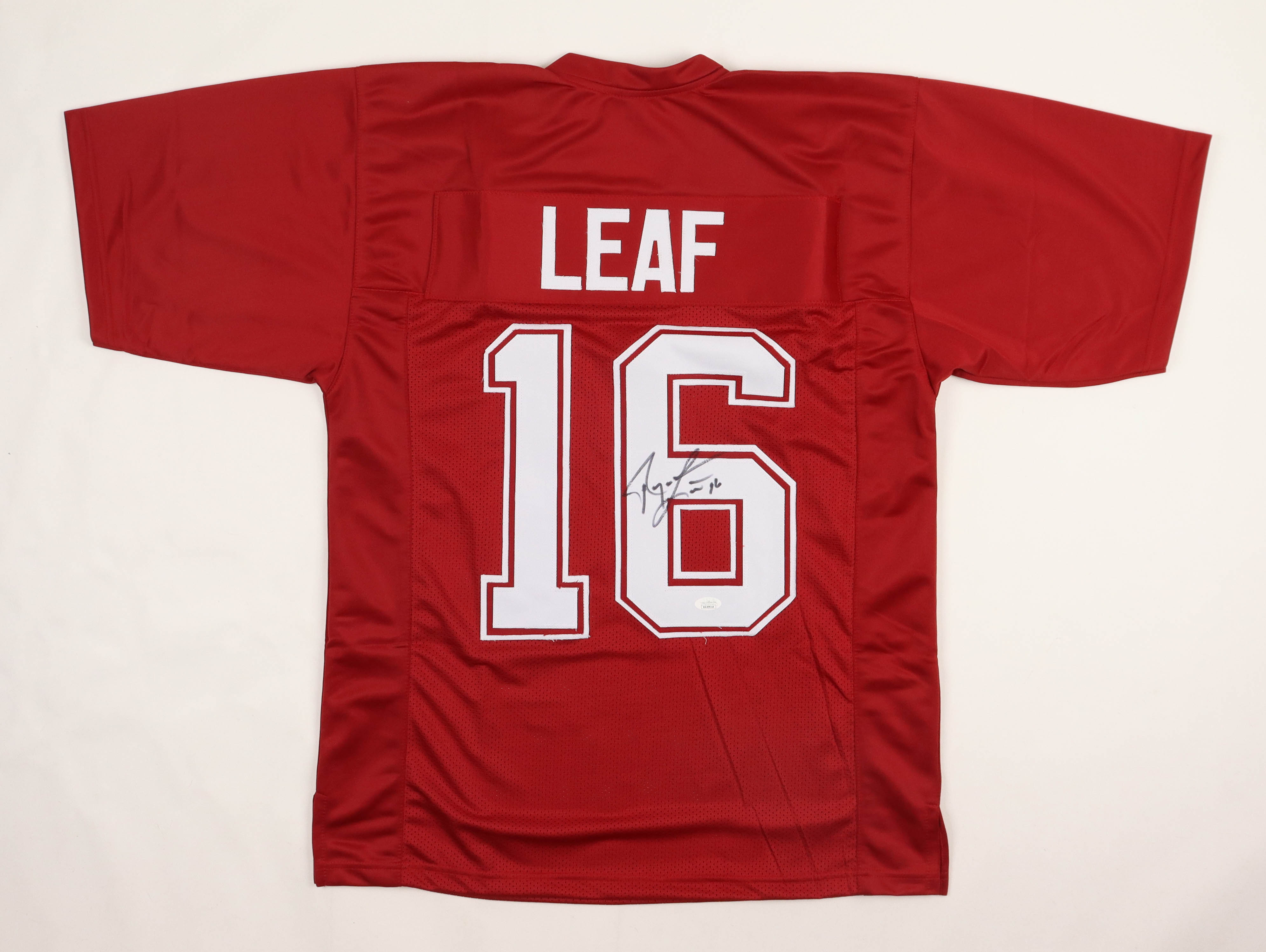 Custom on-field style jersey. Everything is sewn on, size XL. Hand-signed by Ryan Leaf.