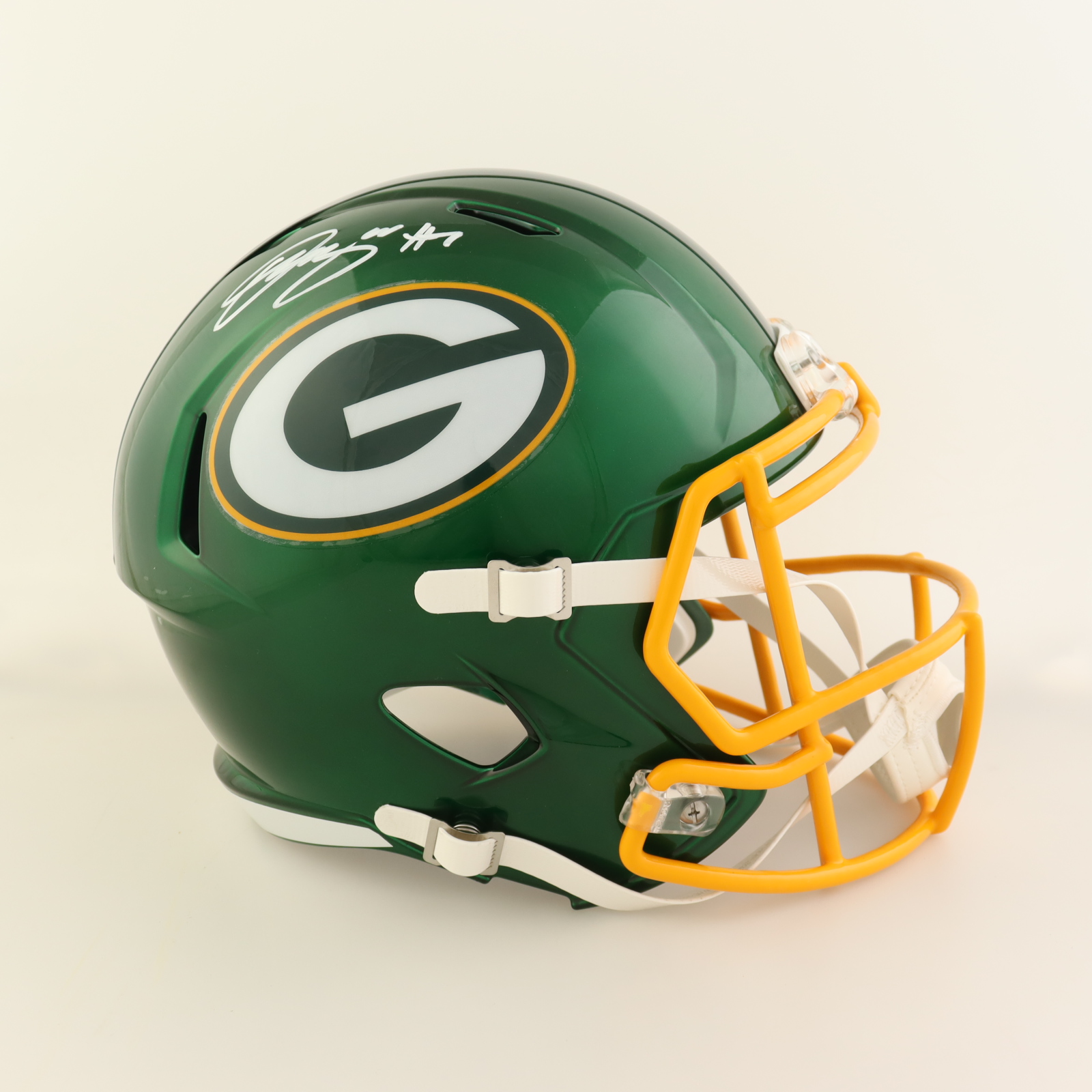 Riddell Green Bay Packers full-size replica Flash Alternate Speed helmet. Hand-signed by Quay Walker.