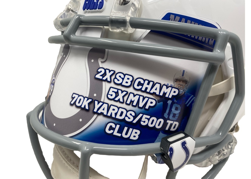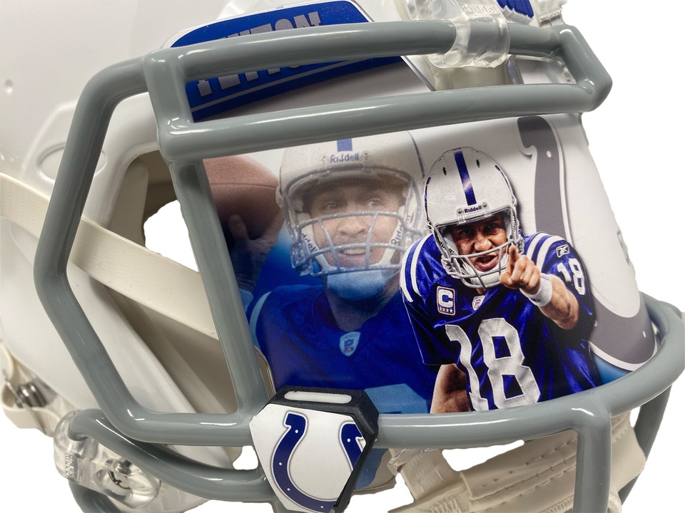 Riddell Indianapolis Colts full-size authentic on-field speed helmet. Hand-signed by Peyton Manning (HOF).