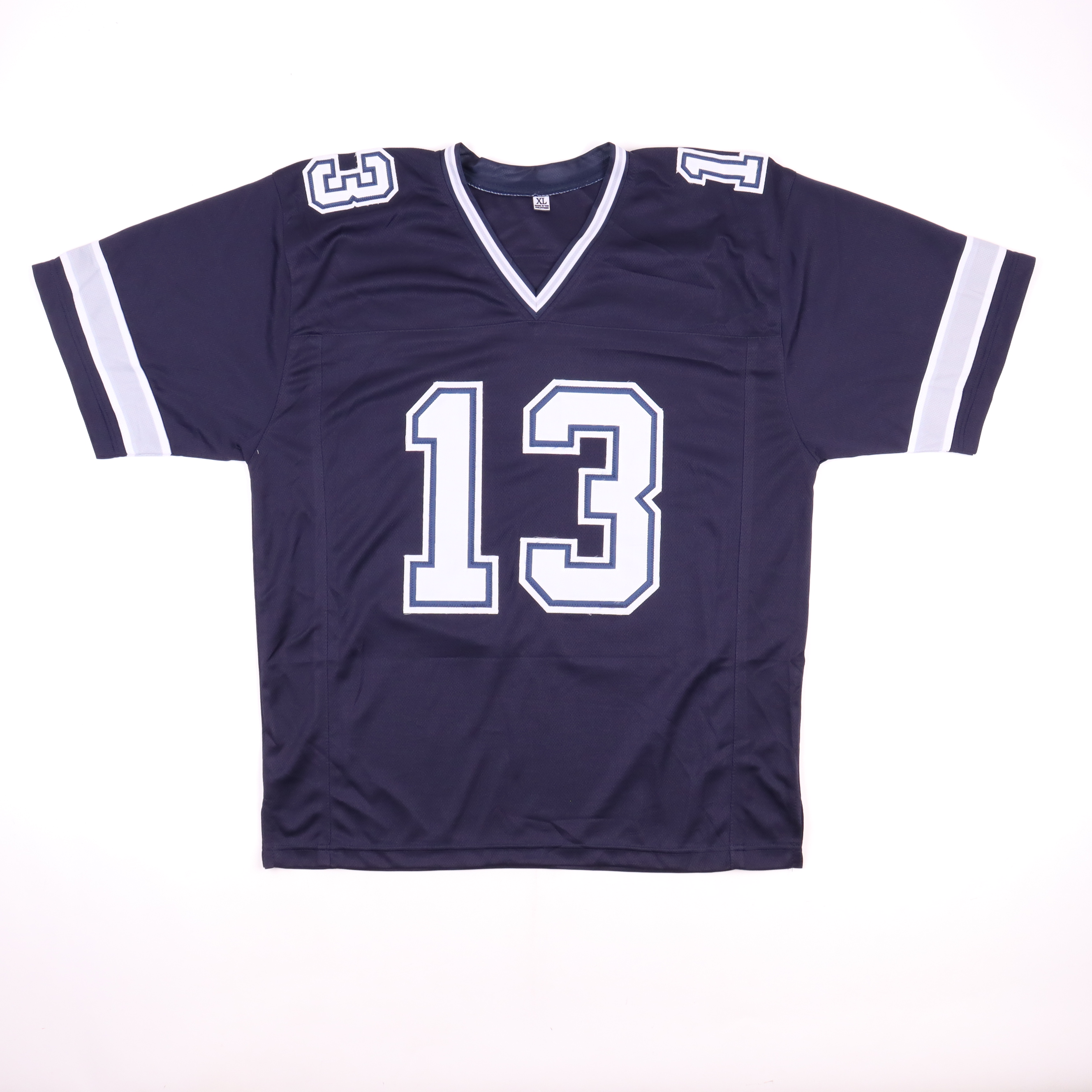 Custom on-field style jersey. Everything is sewn on, size XL. Hand-signed by Michael Gallup.
