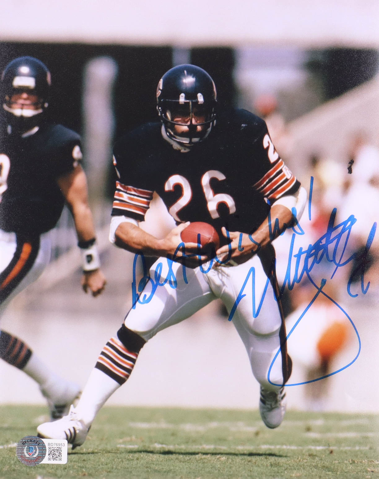 Photo measures 8" x 10" in size. Hand-signed and inscribed by Matt Suhey (Chicago Bears).