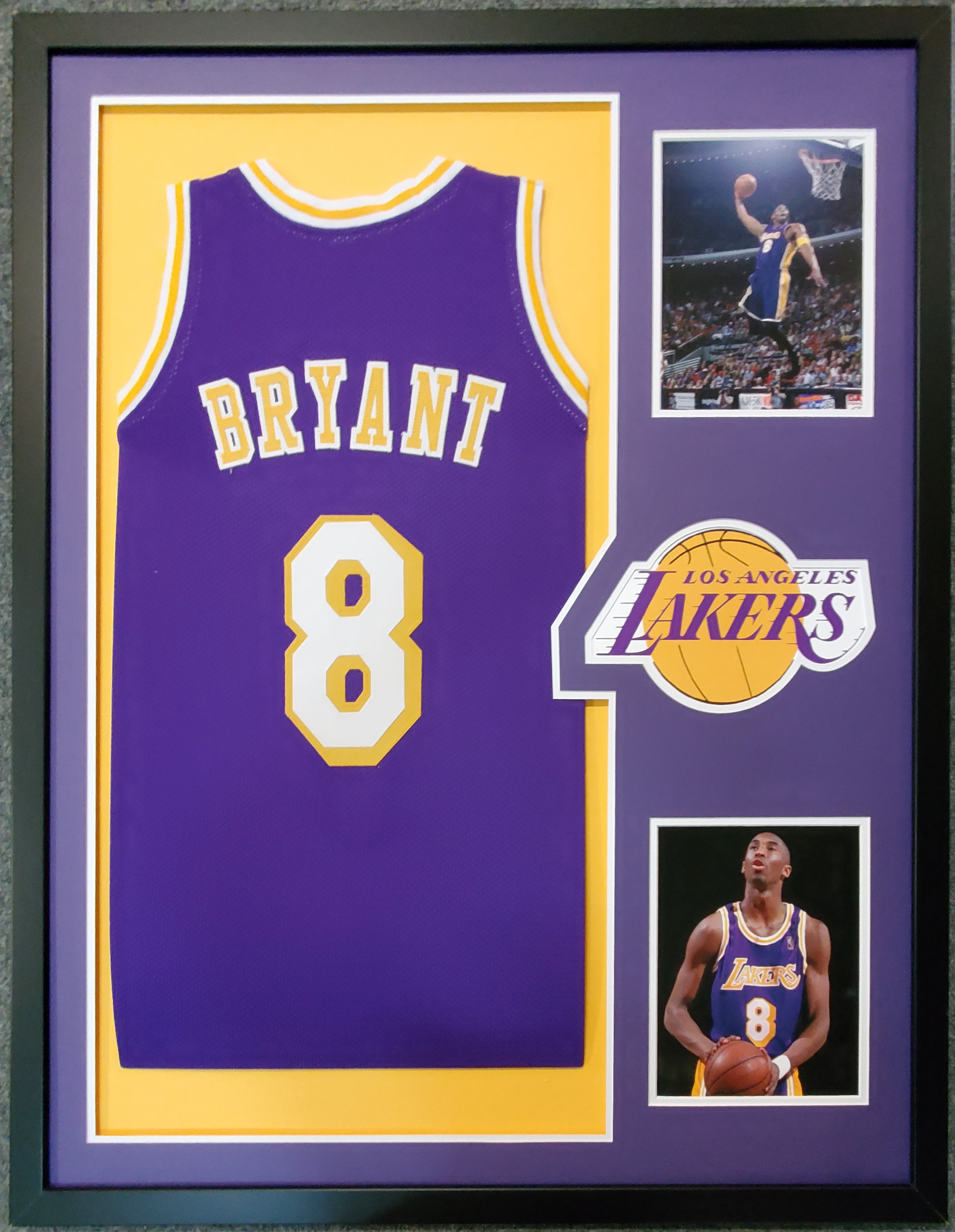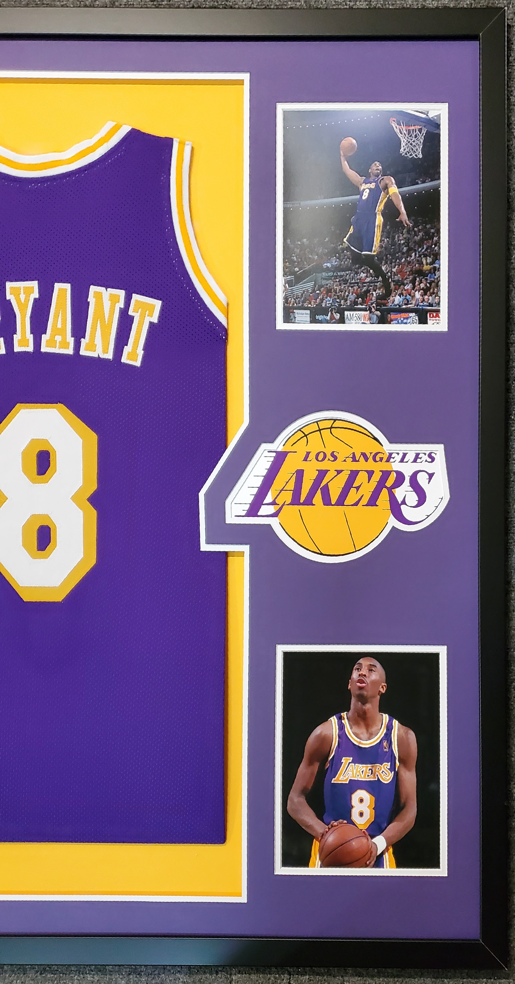 Custom frame measures 34" x 42" in size. Features a custom jersey. Please note, the jersey is unsigned.