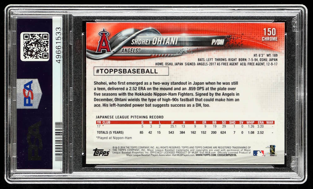 Shohei Ohtani 2018 Topps Chrome Base Set Variation Refractors #150 RC (PSA 10)