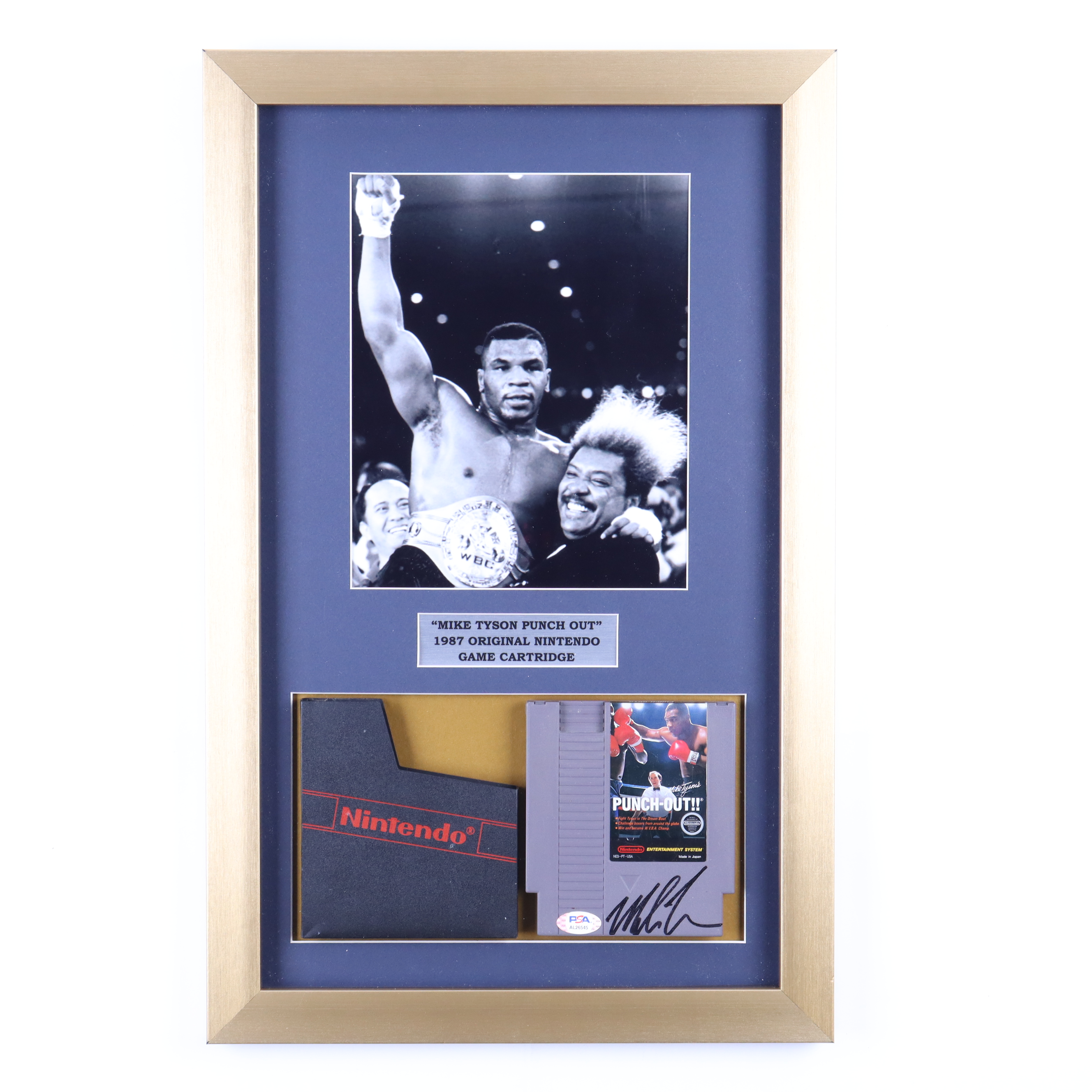 Mike Tyson Signed "Punch-Out!!" Custom Framed 1987 Original Nintendo Game Cartridge Shadowbox Display with Sleeve (PSA)