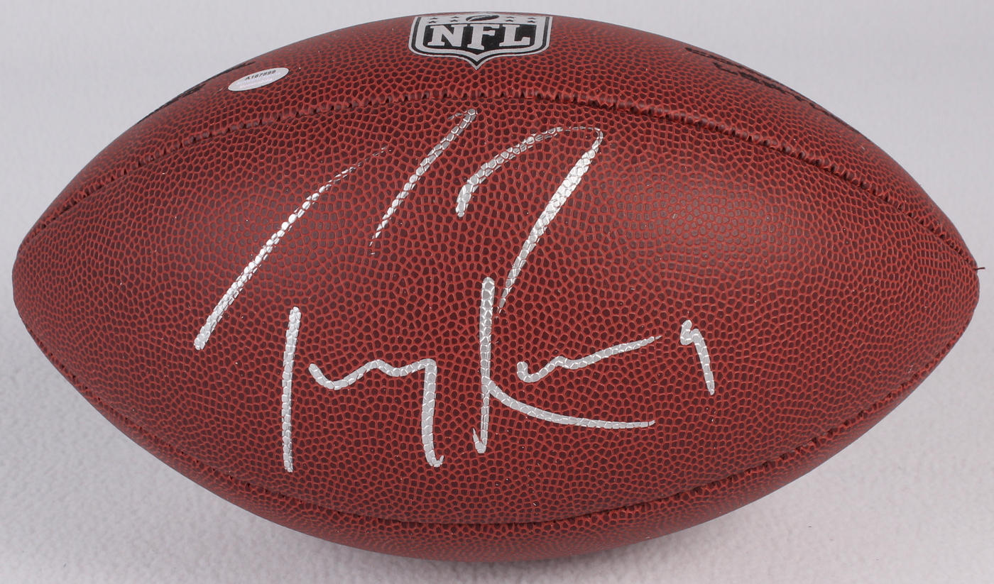 Wilson NFL full-size football. Hand-signed in silver paint pen by Tony Romo (Cowboys).