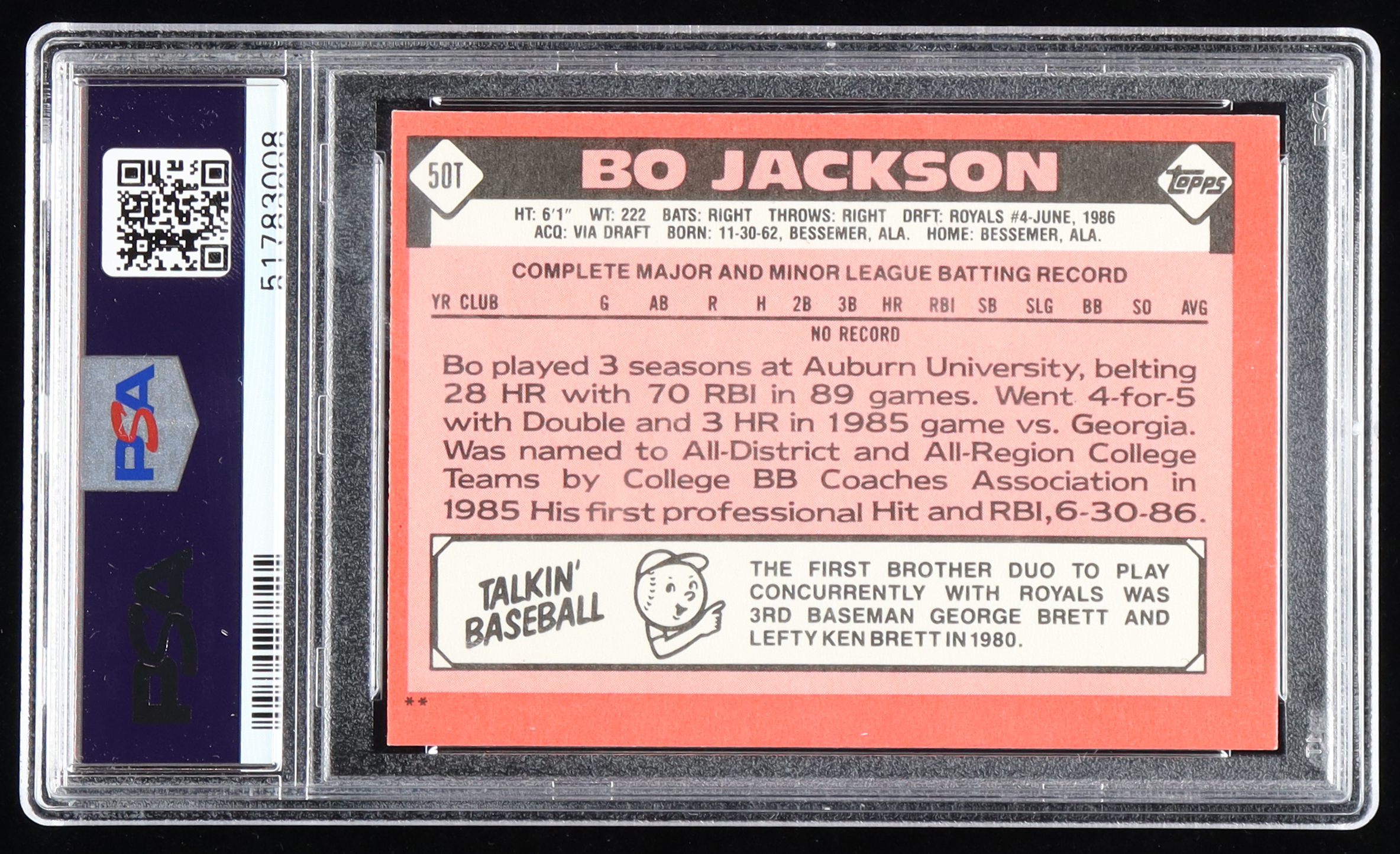 Bo Jackson Signed 1986 Topps Traded #50T XRC (PSA)