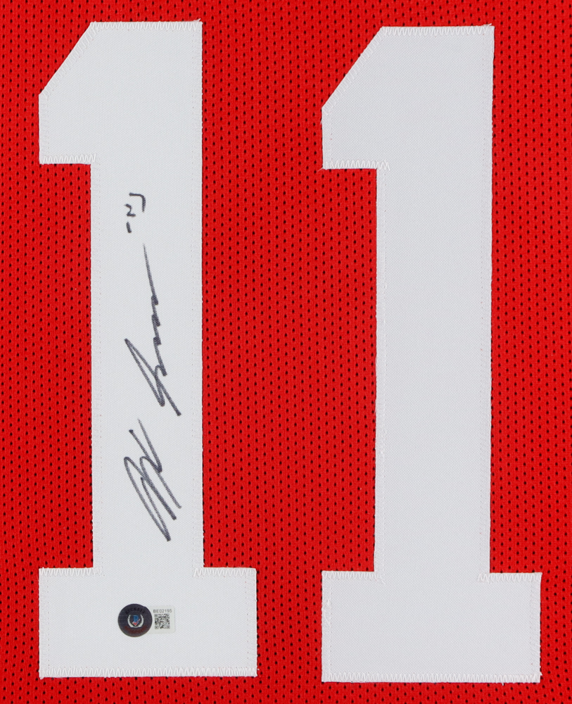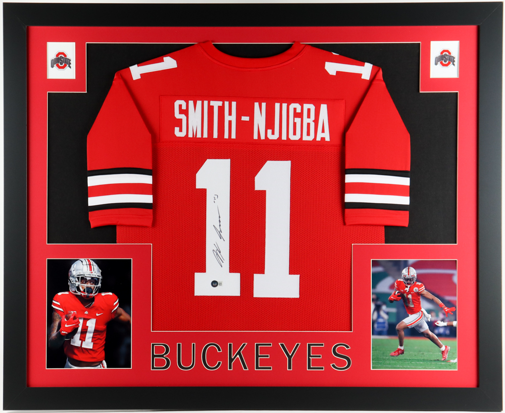Custom frame measures 35" x 43" in size and features a jersey hand-signed by Jaxon Smith-Njigba.