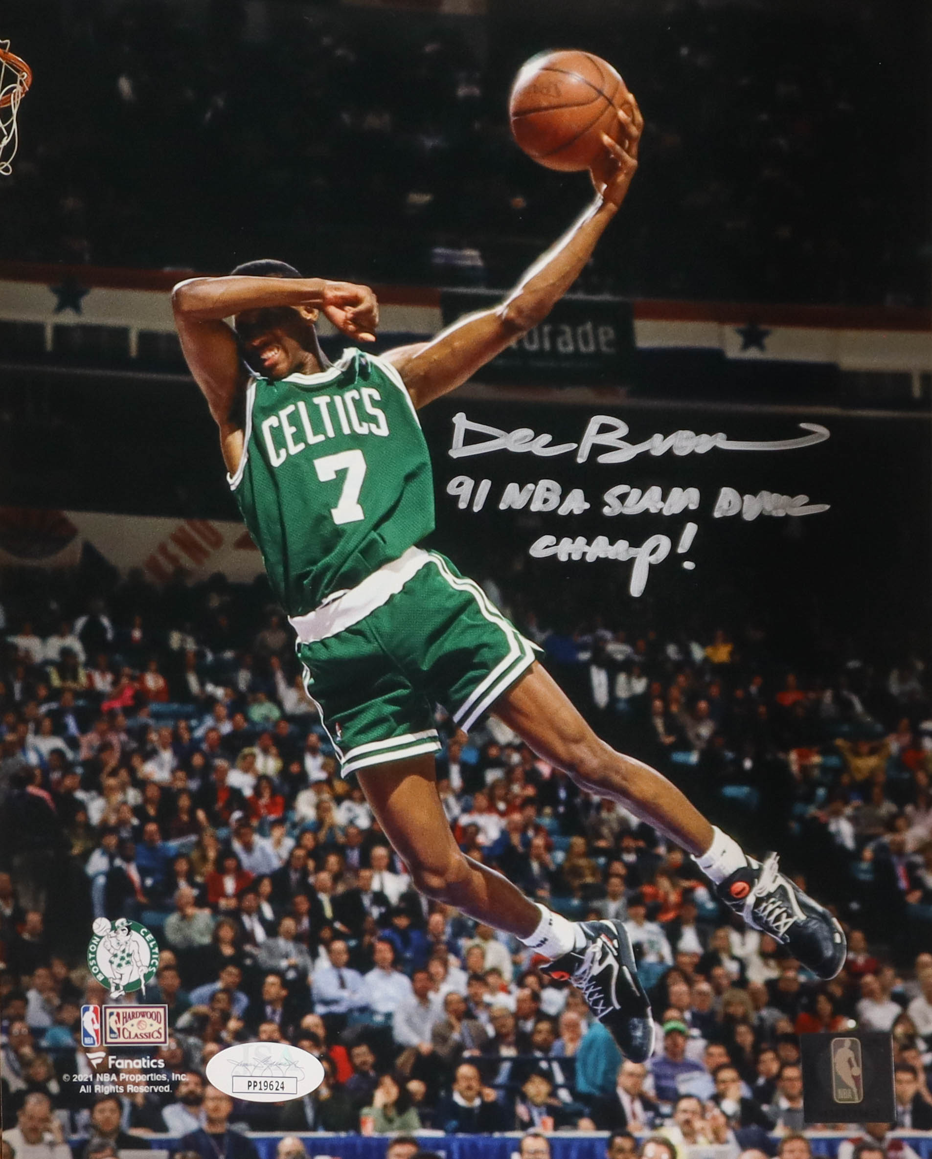 Dee Brown Signed Celtics 8x10 Photo Inscribed "91 NBA Slam Dunk Champ!" (JSA)