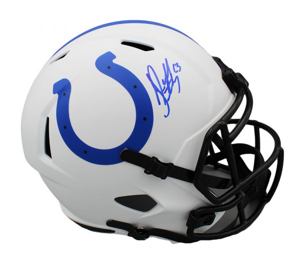Riddell Indianapolis Colts full-size replica Lunar Eclipse Alternate Speed helmet. Hand-signed by Jeff Saturday.