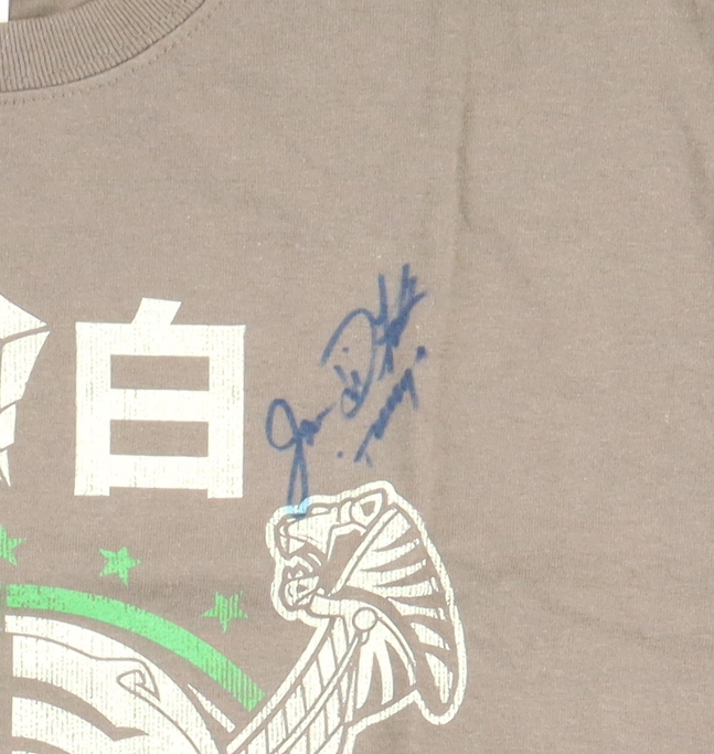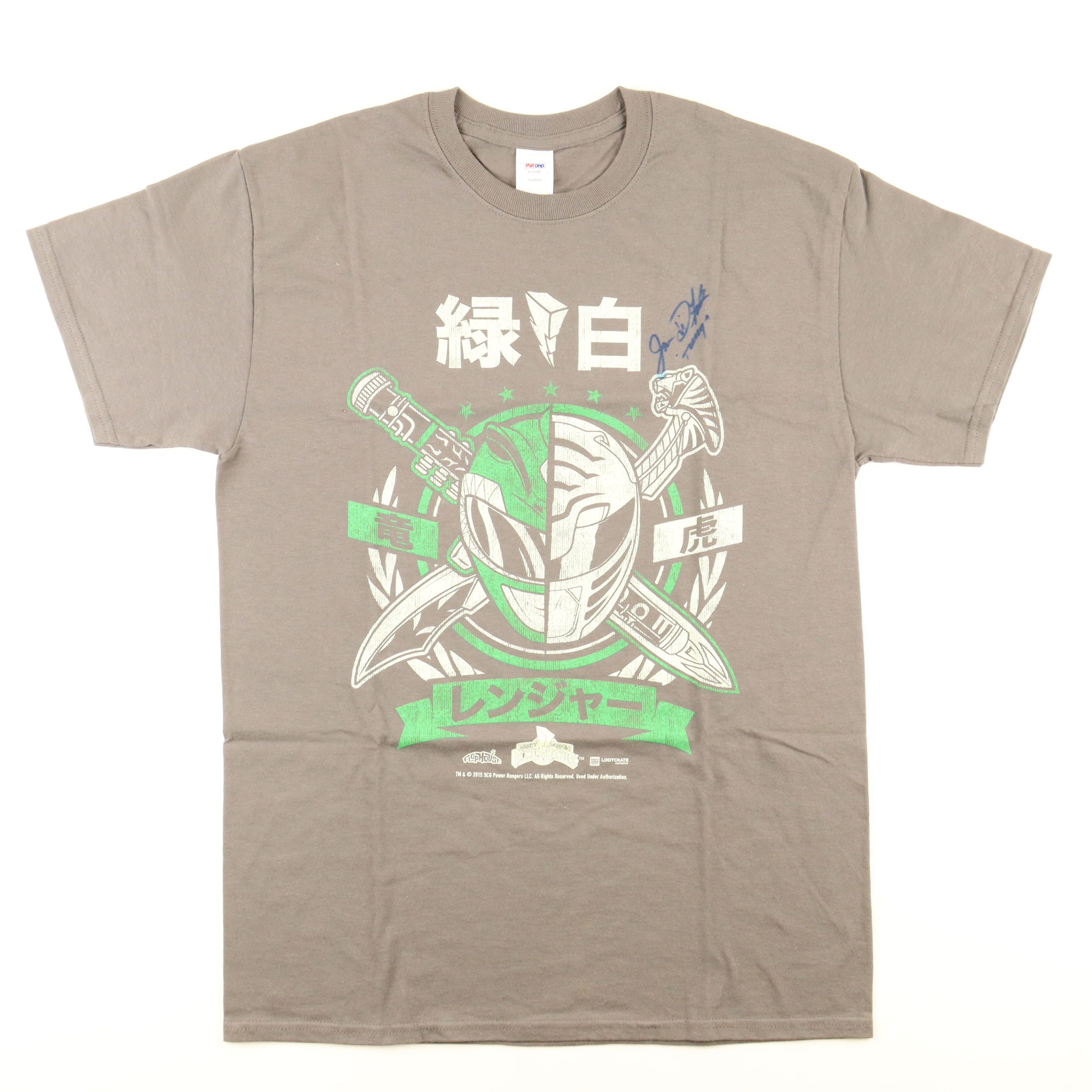 "Power Rangers" t-shirt. Everything printed on, size M. Hand-signed and inscribed by Jason David Frank.