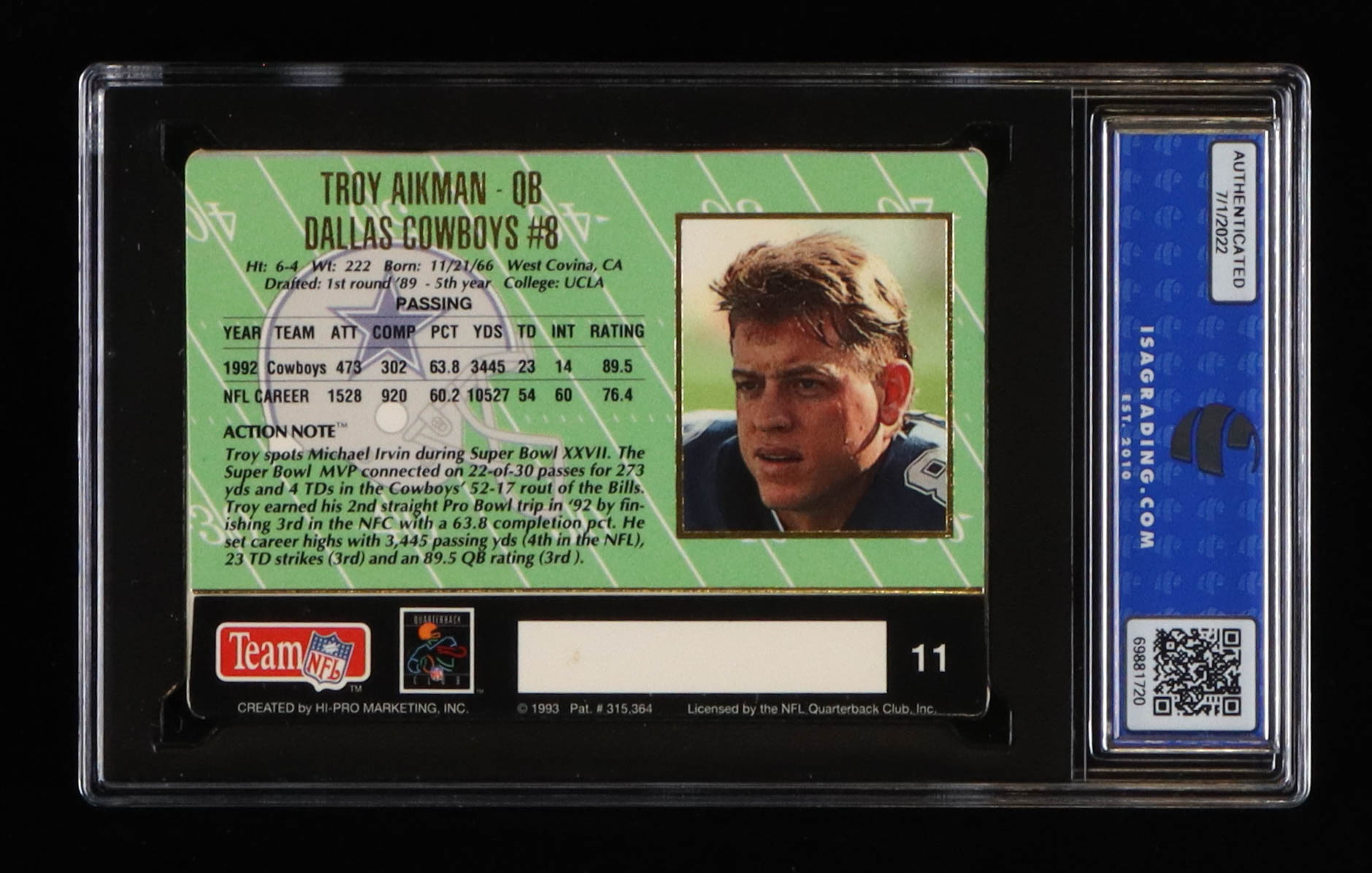 Troy Aikman 1993 Action Packed #11 (ISA 10)