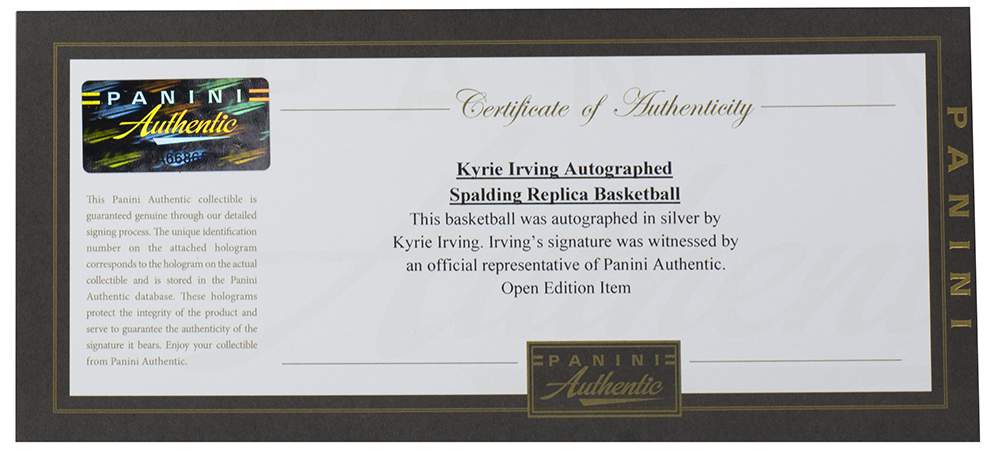Spalding Indoor Game Ball Series replica basketball has been hand-signed by Kyrie Irving (Brooklyn Nets).