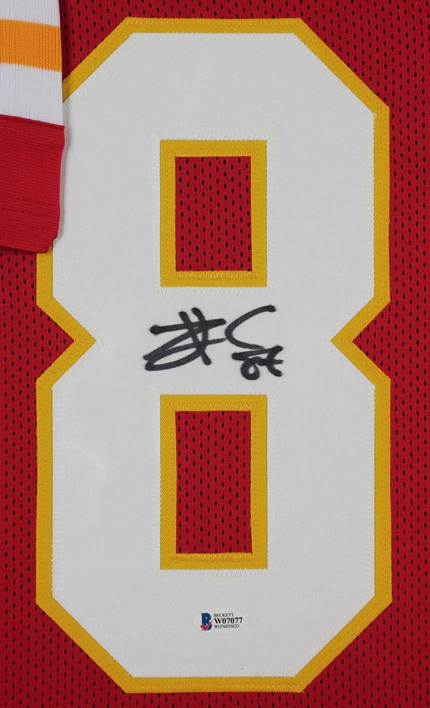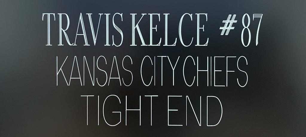 Custom frame measures 35” x 43” in size and features a jersey that has been hand-signed by Travis Kelce.