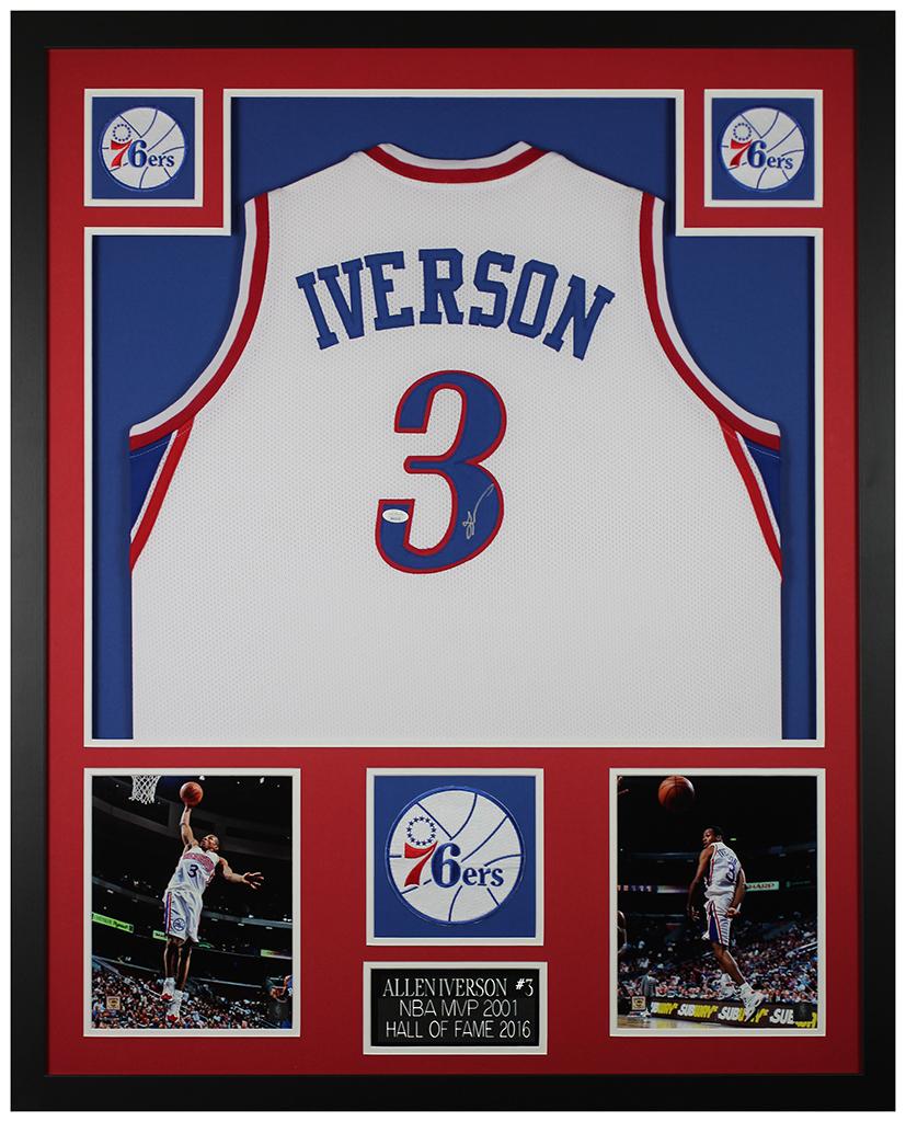 Custom frame measures 35” x 43” in size and features a jersey that has been hand-signed by Allen Iverson (HOF).