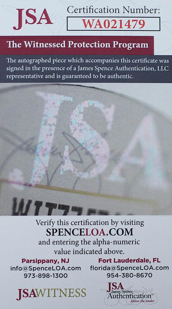 The lot / autograph(s) includes an official James Spence Authentication (JSA) hologram and matching COA for authenticity purposes. The signing of this item was witnessed by JSA.
