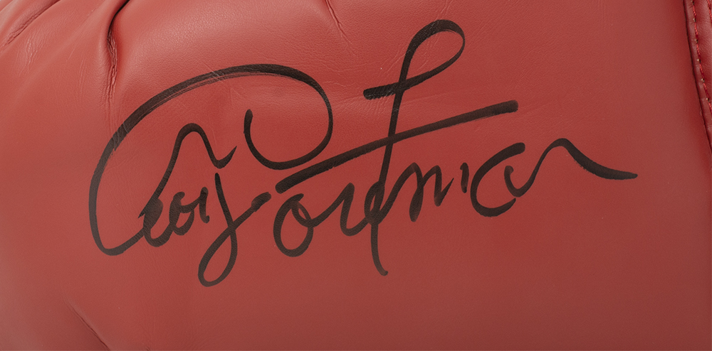 Everlast boxing glove has been hand-signed on the left hand by George Foreman.