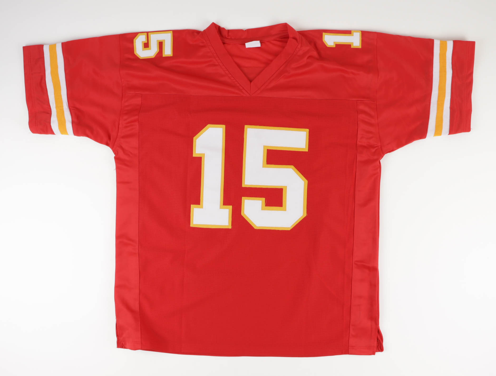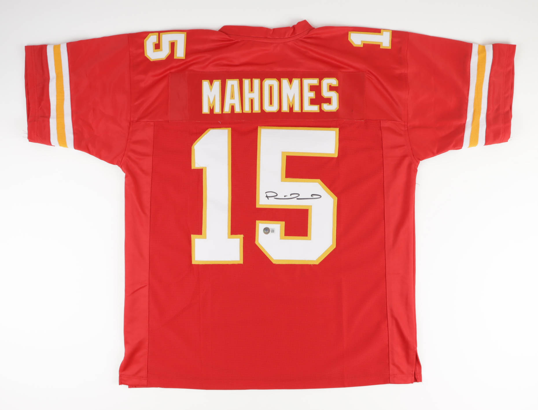 Custom on-field style jersey. Everything is sewn on, size XL. Hand-signed by Patrick Mahomes.